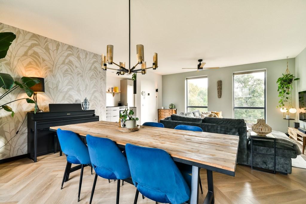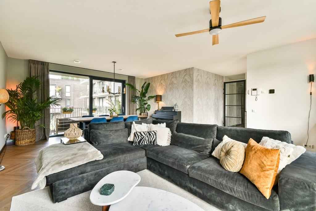 Delightfully light and stylish living in this energy-efficient 2-bedroom corner apartment! Located in the new “Bellini” complex in the desirable Vijverpark neighborhood, this apartment offers plenty of privacy and comfort. Thanks to the private entrance from the elevator, you have no immediate neighbors. The property features 9 floor-to-ceiling windows with unobstructed views of the 'Eigen Tuin' allotments and an inner garden. The walls are elegantly finished and partly adorned with luxurious Arte wallpaper. All rooms are equipped with herringbone-patterned PVC flooring with underfloor heating and cooling. The balcony faces west, where you can enjoy the afternoon and evening sun.