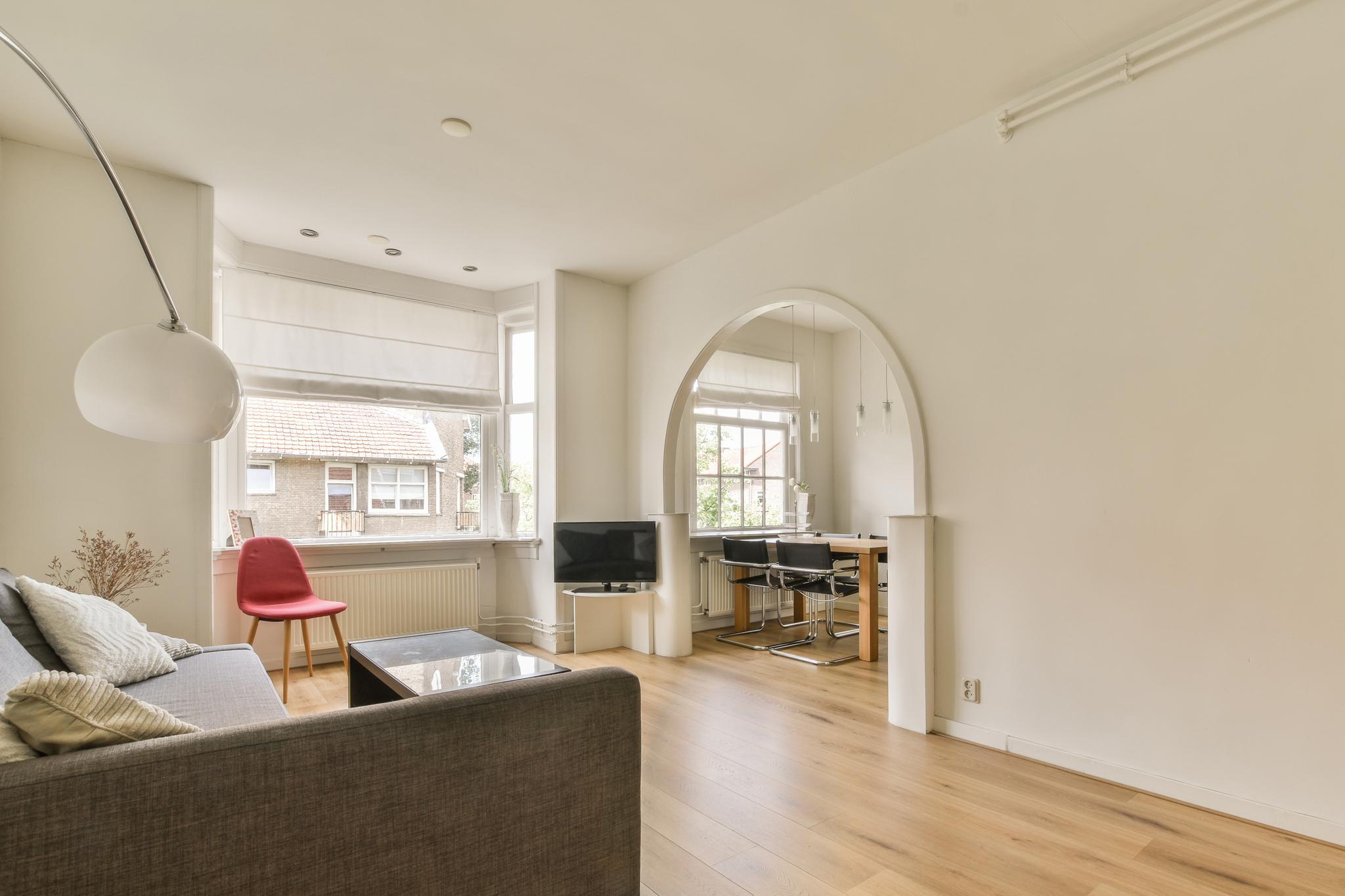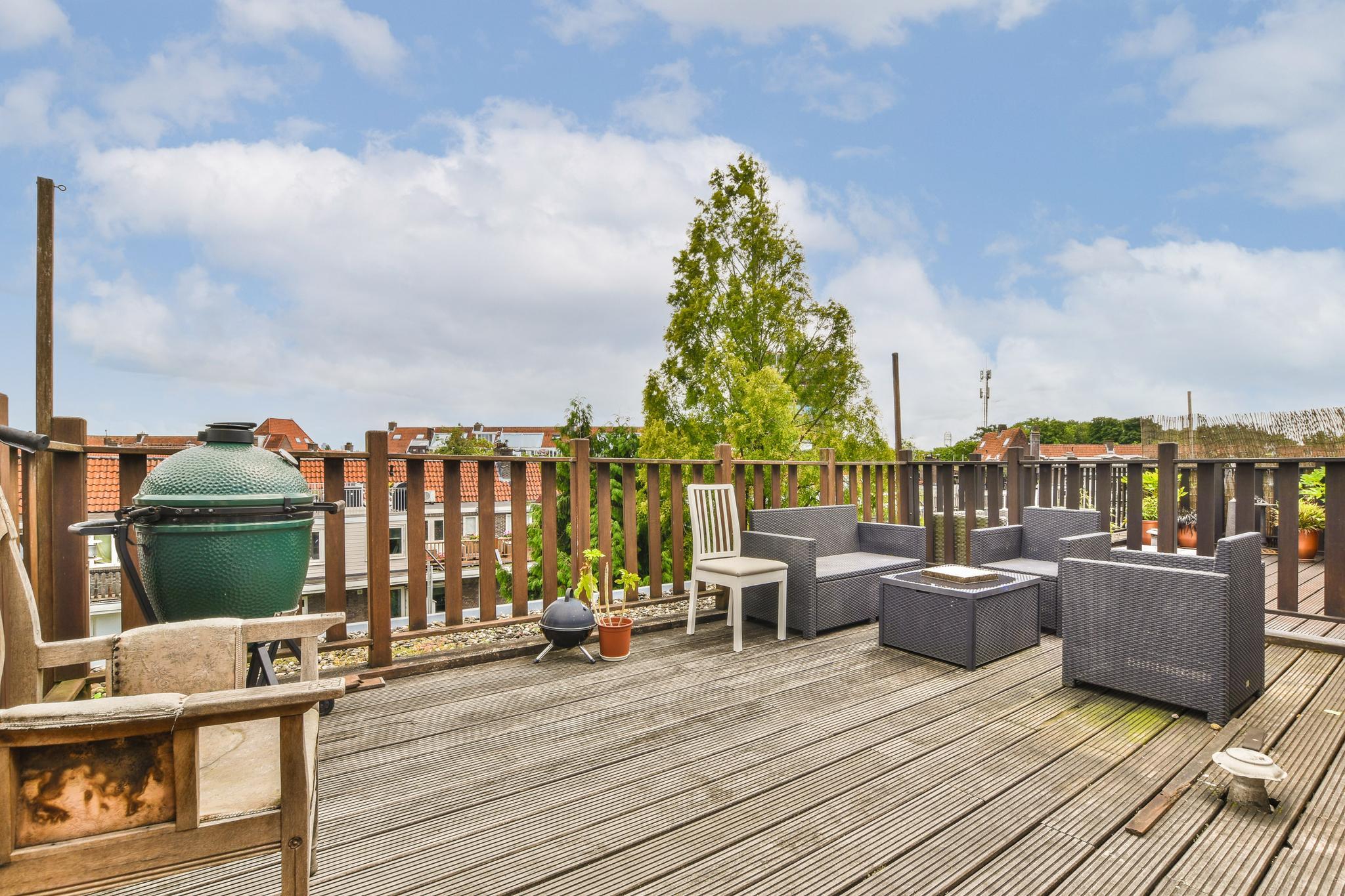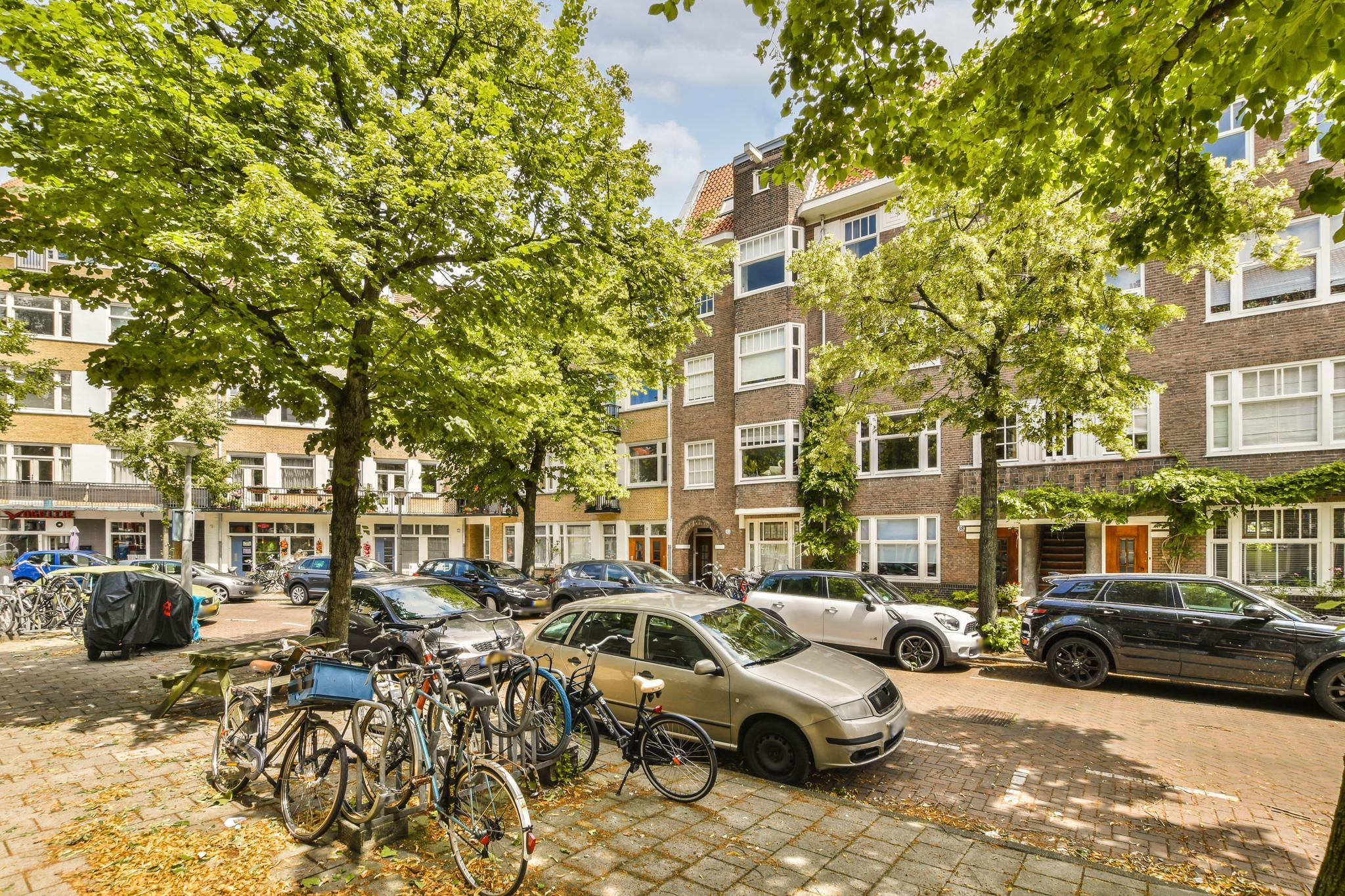 Beautiful 2-room apartment (1 bedroom) of approximately 55 m² with a sunny balcony and a lovely roof terrace facing southeast. The apartment is situated in a beautiful location in a side street near the Hoofddorpplein and within walking distance of the Vondelpark and Rembrandtpark. The apartment is on the 3rd floor with on the 4th (top) floor a storage room and a shared roof terrace.