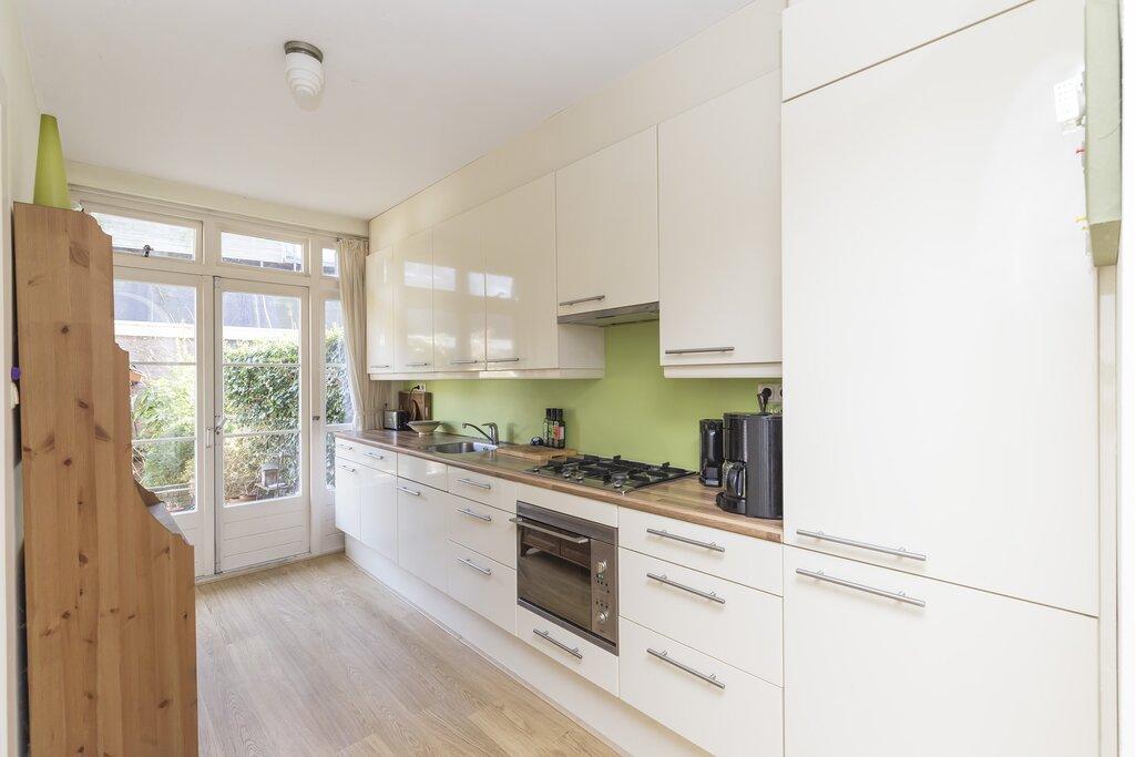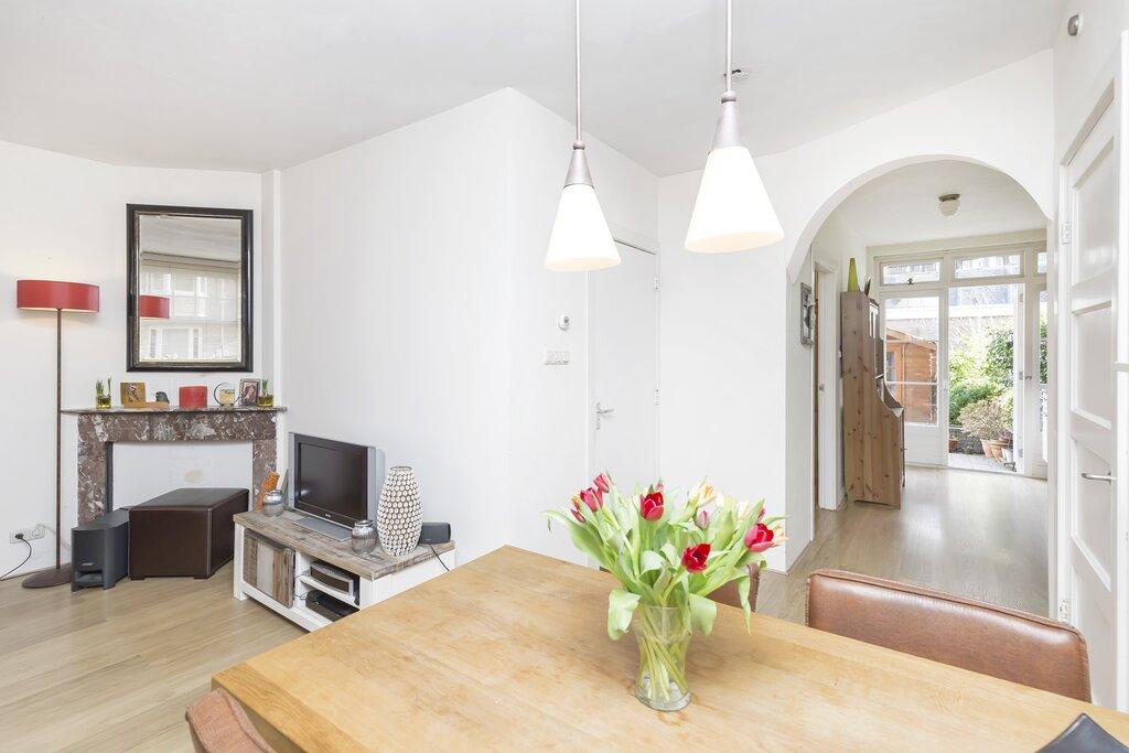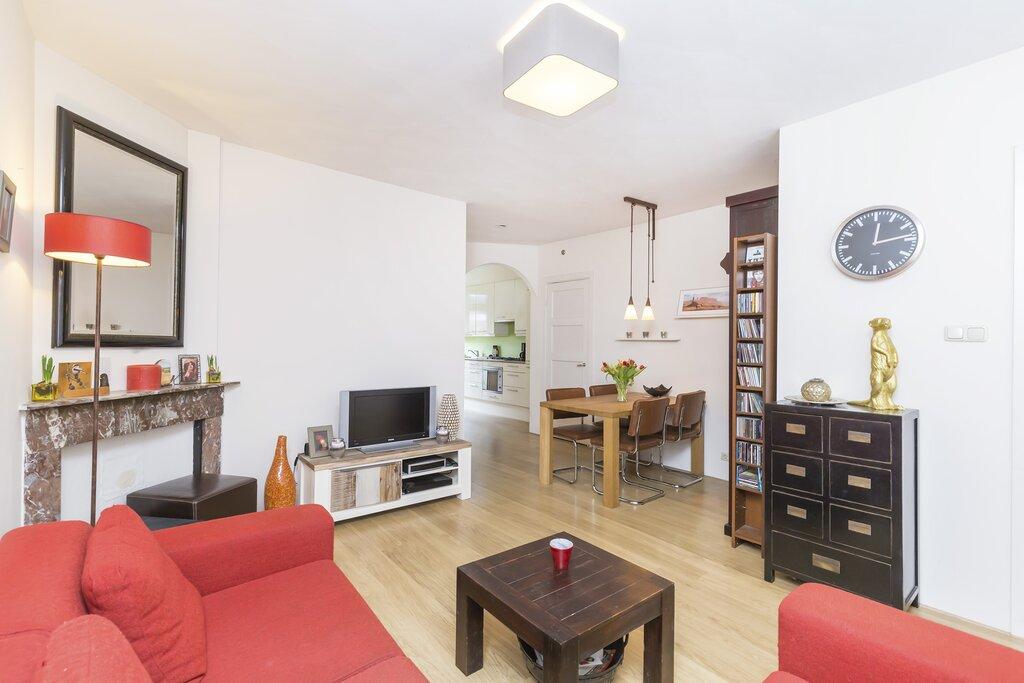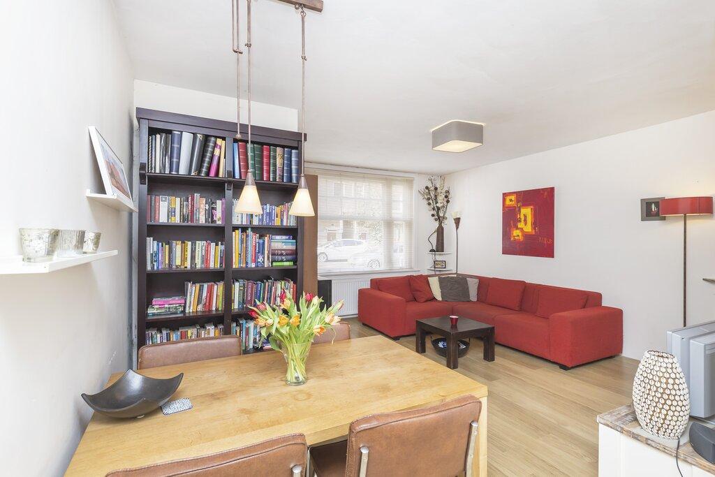 Charming, bright and fully furnished 1-bedroom apartment with a sunny garden and plenty of natural light. The house combines its atmosphere with a spacious 50 m² garden and a great location in the popular Hoofddorppleinbuurt in Amsterdam. Entrance, hall, living room which is equipped with a sofa, dining table and TV. Furthermore, open kitchen which is equipped with all appliances. The kitchen also provides access to the beautiful garden, a real luxury in the private city. With a surface of 50 m² and a small shed, this lovely outdoor space is the perfect place to enjoy the sun. The bedroom is located at the rear and is equipped with a double bed and a spacious closet. Finally, the bathroom with sink, walk-in shower and toilet. This ground floor apartment is located on a quiet street in a bustling neighborhood and is ideally situated for enjoying the best of Amsterdam. The surrounding neighborhood offers a lot, ranging from charming cafes to unique shops and the local gym. The nearest supermarket is less than a 5-minute walk away and numerous public transport connections are available. Tram 2 provides access to Central Station in less than 20 minutes. The admired Vondelpark and the beautiful New Lake of Amsterdam are also close to home and the Zuidas business district can be reached in 10 minutes by bike. Look no further for a nice town house with a beautiful garden!
