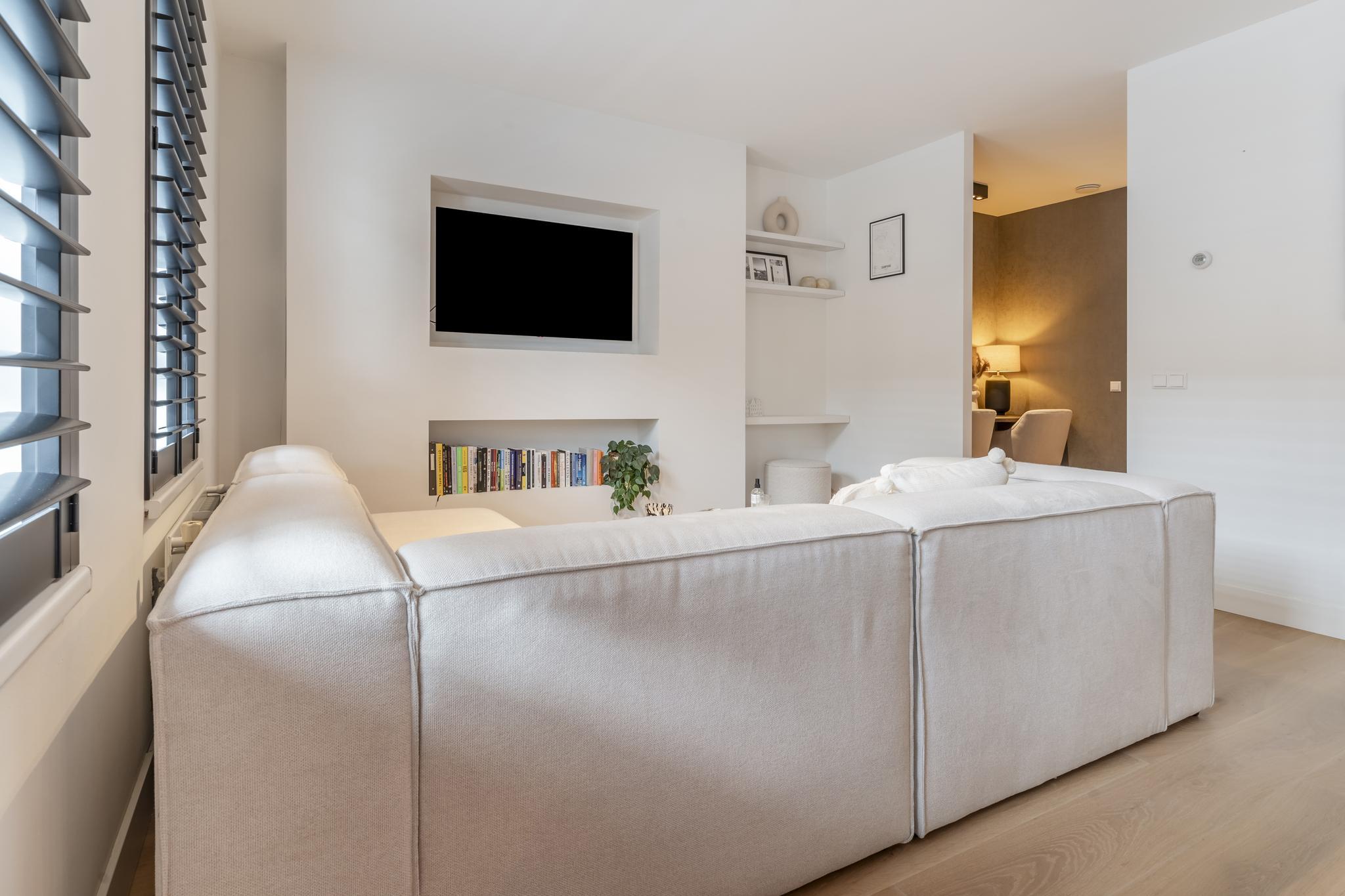 Nog voor de entree van de woonkamer is er ruimte gemaakt voor een werk/studie ruimte. Door de praktische indeling binnen de woning krijg je een ruimtelijk en sfeervol gevoel.