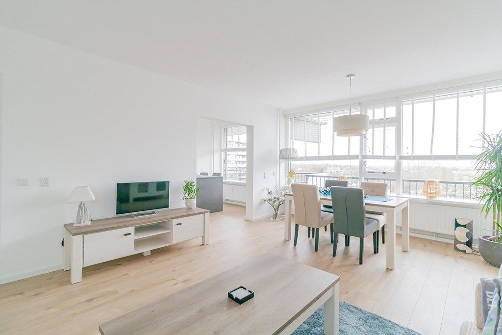 Het appartementencomplex “Stratus” ligt in de rustige woonwijk Groenelaan. De woning is gelegen op de 7e verdieping en is via trap en lift bereikbaar. Het appartement is in 2020 volledig gerenoveerd. Vanuit de entree/hal zijn alle ruimtes toegankelijk. De woonkamer is ruim en dankzij de vele grote raampartijen is het zeer licht. Vanuit de keuken is het ruime balkon toegankelijk. Tevens is de keuken vanuit de woonkamer toegankelijk. De nieuwe keuken is van alle gemakken voorzien, zoals een combi-oven, koel-vries combinatie, afzuigkap, 5-pits kookplaat en een vaatwasser. De grote slaapkamer is voorzien van een tweepersoonsbed en een ruime kledingkast. De tweede slaapkamer beschikt over een bureau, slaapbank en een kast. De ruime badkamer is fraai afgewerkt en is voorzien van een inloopdouche met infraroodfunctie, was-droogcombinatie en een wastafel. Het appartement is gelegen naast het populaire winkelcentrum Groenhof met een grote diversiteit aan winkels. De ligging t.o.v. diverse voorzieningen is perfect. De International School of Amstelveen (ISA) bevindt zich op steenworp afstand en nabij o.a. het overdekte winkelcentrum Groenhof en Stadshart Amstelveen. Het openbaar vervoer richting Amsterdam is op loopafstand en de A9 is binnen enkele minuten bereikbaar. Er is voldoende parkeergelegenheid voor de deur.