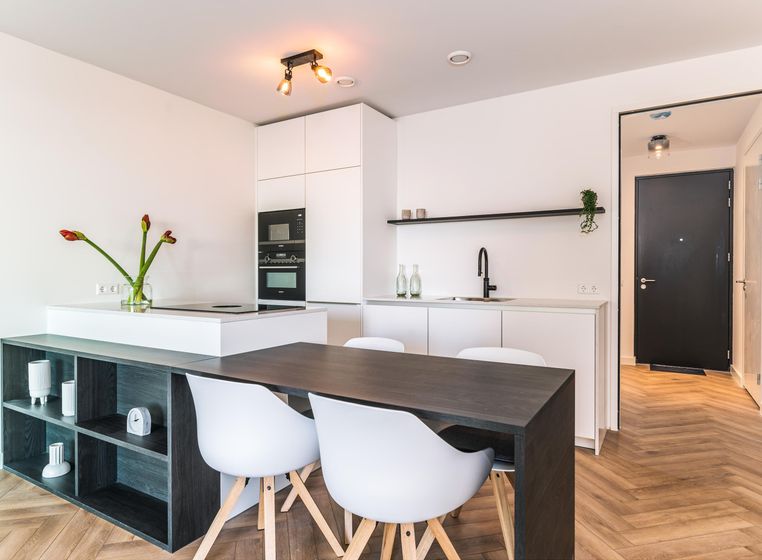 De keuken is van alle gemakken voorzien, zoals twee combi-ovens, koel-vriescombinatie, 5-pits inductiekookplaat, afzuigkap en vaatwasser. De woonkamer is voorzien van twee 3-zits banken en een OLED-TV. De eetkamer is uitgerust met een tafel met 8 zitplaatsen, een kast en een boekenkast, rechtstreeks afkomstig uit Italië. De ruime hoofdslaapkamer is gelegen aan de voorzijde van het appartement en is ingericht met een tweepersoonsbed. De tweede slaapkamer is eveneens aan de voorzijde gelegen en is in gebruik als inloopkast. De derde slaapkamer is gelegen aan de achterzijde. De slaapkamer aan de achterzijde heeft een eenpersoonsbed dat tweepersoons wordt, een bureau en een kast. De badkamer is recent gemoderniseerd en voorzien van een bubbelbad, douche, wastafel en toilet. Een tweede toilet en fontein bevinden zich separaat op de gang. In de gang is er een afgesloten wasruimte met een wasmachine van de laatste generatie van 9 kg en een wasdroger van 9 kg. Er is een eigen parkeerplaats beschikbaar in de ondergrondse beveiligde parkeerplaats en is inbegrepen in de huurprijs.
