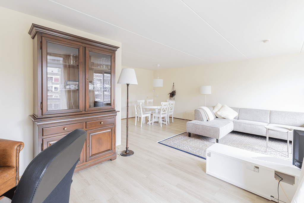 De woonkamer is ruim en biedt toegang tot het balkon dat is gelegen op het westen. De volledig gemeubileerde woonkamer beschikt over rolluiken en zonneschermen zodat er volledige privacy gecreëerd kan worden. De nieuwe separate keuken is van alle gemakken voorzien, zoals een koel-vriescombinatie, inductiekookplaat, oven, vaatwasser en afzuigkap. Tevens is de keuken voorzien van een gezellige eethoek. De keuken biedt toegang tot de inpandige berging en is voorzien van een wasmachine, droger en de cv-ketel. Tevens bevindt zich hier ook nog eens extra opbergruimte.
