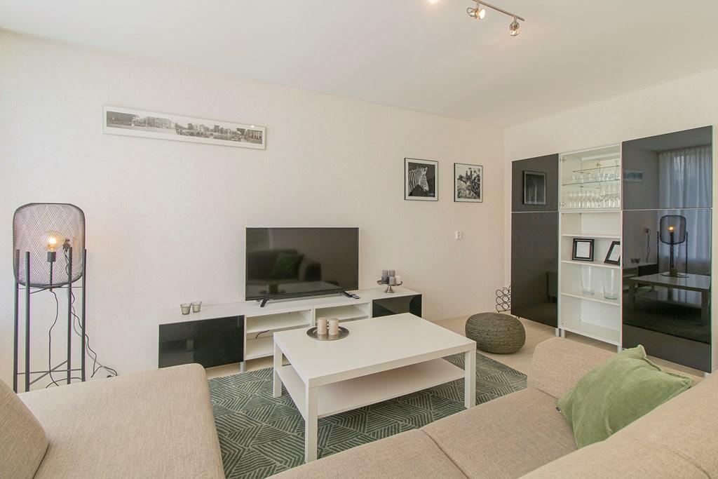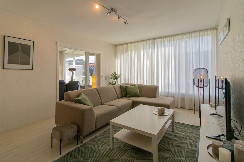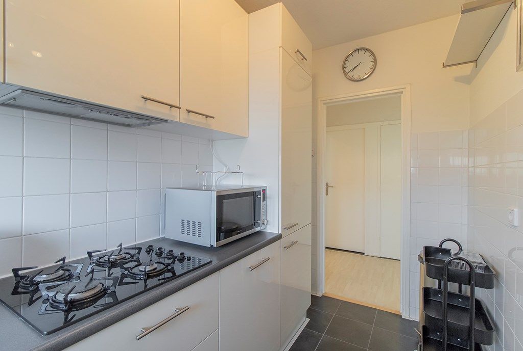 De keuken is aan de voorzijde gelegen en is voorzien van alle gemakken, zoals een koel-vriescombinatie, vaatwasser, combi-magnetron, 4-pits gaskookplaat en afzuigkap. De slaapkamers zijn aan de galerijzijde gelegen. De grote slaapkamer beschikt over een tweepersoonsbed en een kledingkast. De tweede slaapkamer kan in overleg naar wens worden ingericht. De badkamer beschikt over een douchecabine, wastafel, wasmachine en droger. Het toilet is apart gesitueerd in de hal.