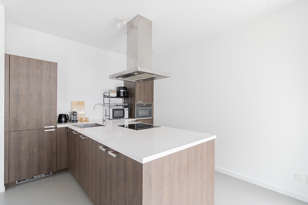 Via de entree zijn alle vertrekken toegankelijk. De ruime, lichte woonkamer is voorzien van een luxe grote open keuken is van alle gemakken voorzien zoals een koel-vriescombinatie, inductiekookplaat, inbouwoven, vaatwasser, afzuigkap en veel opbergruimte.
