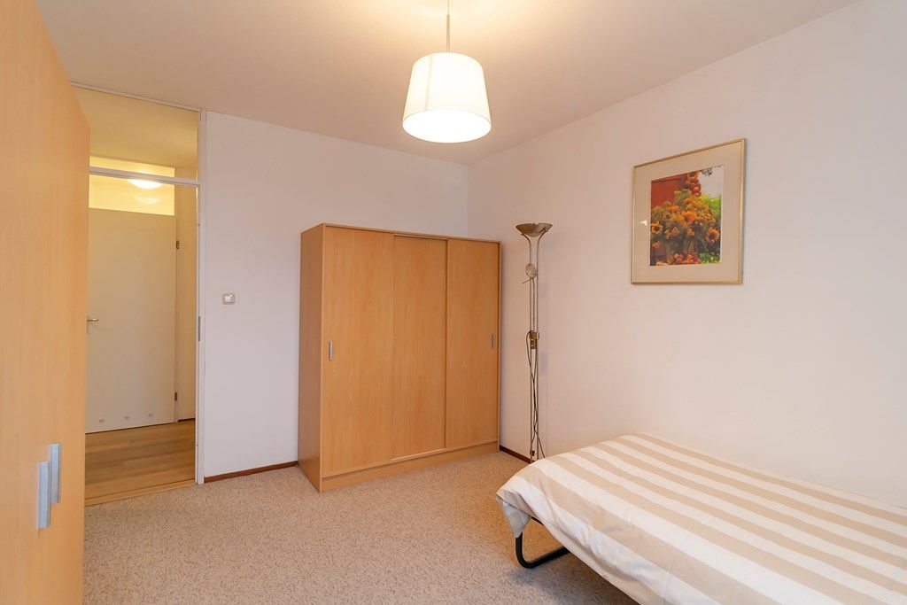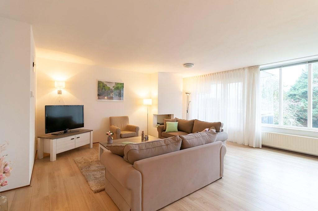 Het appartement heeft een ruim entree waarvandaan de woonkamer, de slaapkamers, het toilet en de badkamer toegankelijk zijn. De royale woonkamer is heerlijk licht en beschikt over een open haard en een deur naar het balkon op het westen. Naast de woonkamer bevindt zich de ruime open keuken welke van alle gemakken is voorzien. Bij de keuken bevindt zich een bijkeuken met de cv-installatie, wasmachine en droger en het mechanisch ventilatiesysteem. De hoofdslaapkamer van het appartement ligt, net zoals de tweede slaapkamer, aan de oostzijde van het appartement. De tweede slaapkamer is ook ruim van afmeting. De badkamer is afgewerkt met betegeling in een lichte kleurstelling, een separate douche en een wastafel. Naast de badkamer is een separaat toilet aanwezig.