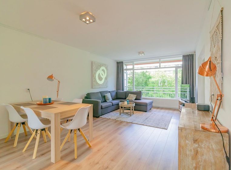 De ruime woonkamer biedt toegang tot het grote balkon met zonwering. Het balkon is op het westen gelegen en biedt uitzicht op de groene omgeving. De ruime keuken is van alle gemakken voorzien zoals een koelkast, vriezer, vaatwasser en oven/magnetron. De ruime ouderslaapkamer is voorzien van een tweepersoons bed en een ruime kledingkast. De badkamer is voorzien van een wastafelmeubel, bad, douchecabine, wasmachine en droger. De tweede slaapkamer beschikt over een eenpersoonsbed, kledingkast en een bureau.