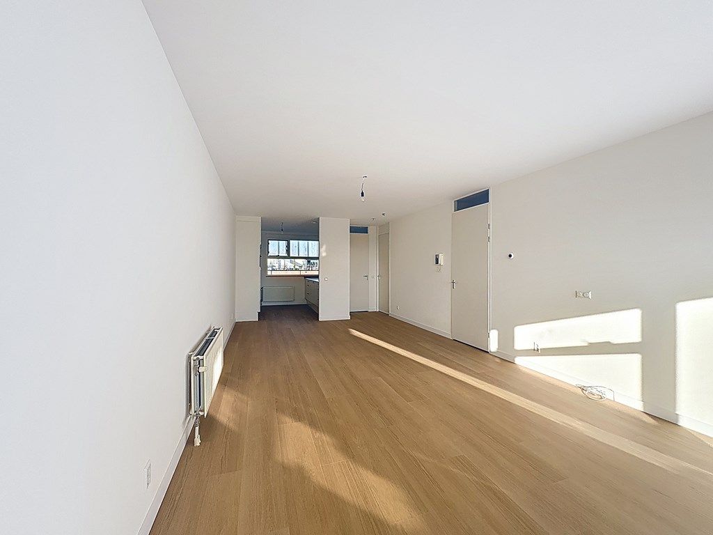 De ruime, lichte woonkamer vormt het hart van de woning en geeft direct toegang tot het royale balkon op het zuiden, waar je de hele dag van de zon kan genieten.