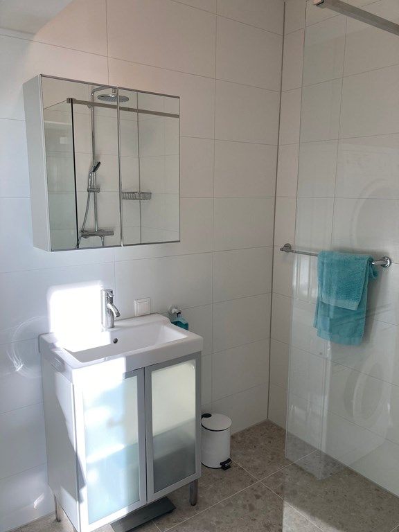 De ruime slaapkamer, wederom met prachtig uitzicht, is voorzien van een hoek kastenopstelling (walk in closet) met veel bergruimte voor kleding/schoenen en 2-persoonsbed, toegang tot de recent vernieuwde badkamer welke is voorzien van een royale inloopdouche, wastafel met spiegelkast, kastruimte en wasmachine/droger.