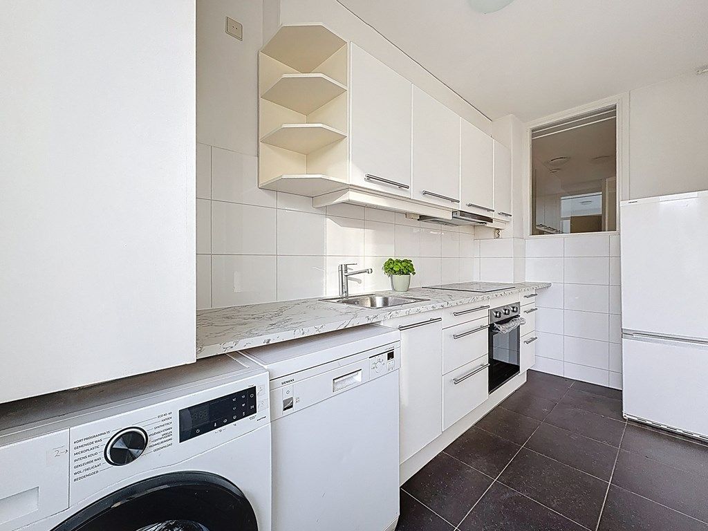 De entree op de 2e verdieping komt uit op de grote hal, toilet met fontein, ruime en zeer lichte woonkamer met een balkon aan de voor- en achterzijde (in de ochtend, middag en avond zon), recent gerenoveerde half open keuken met nieuwe grote oven, inductie plaat, grote ijskast met vriezer en een ruim werkblad.