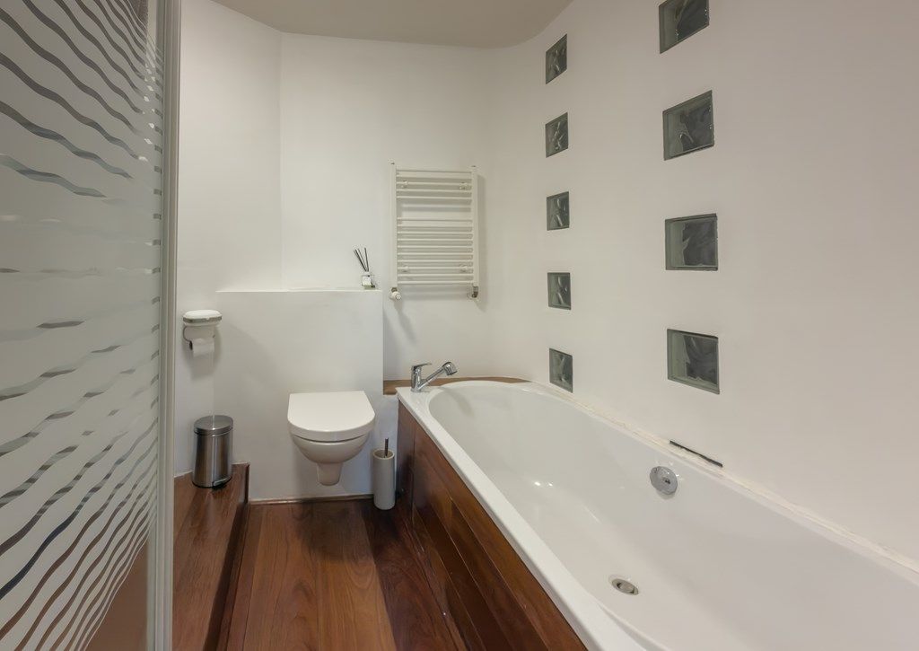 De badkamer is praktisch en compleet ingericht met een ligbad, douche, toilet en wastafel. Daarnaast beschikt de woning over een ruime berging onder het appartement, ideaal voor het stallen van een fiets of extra spullen.