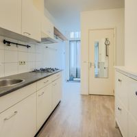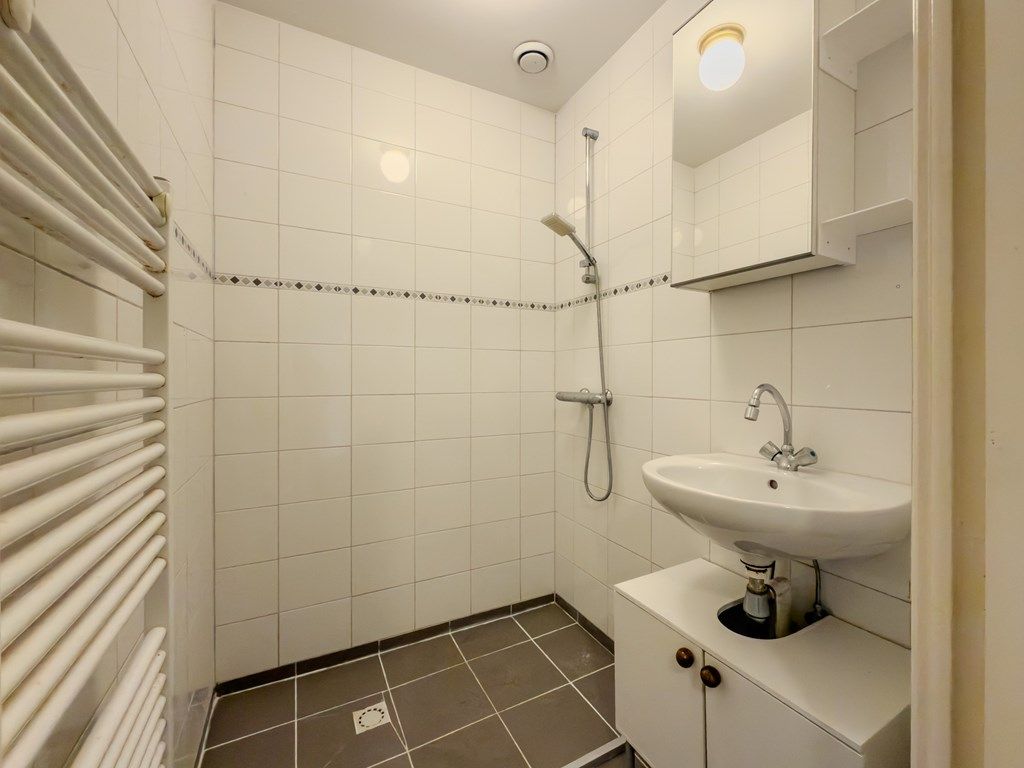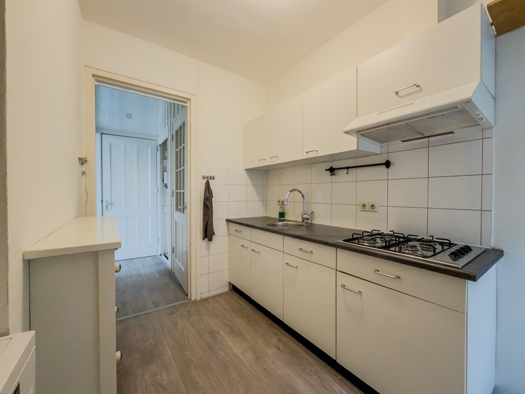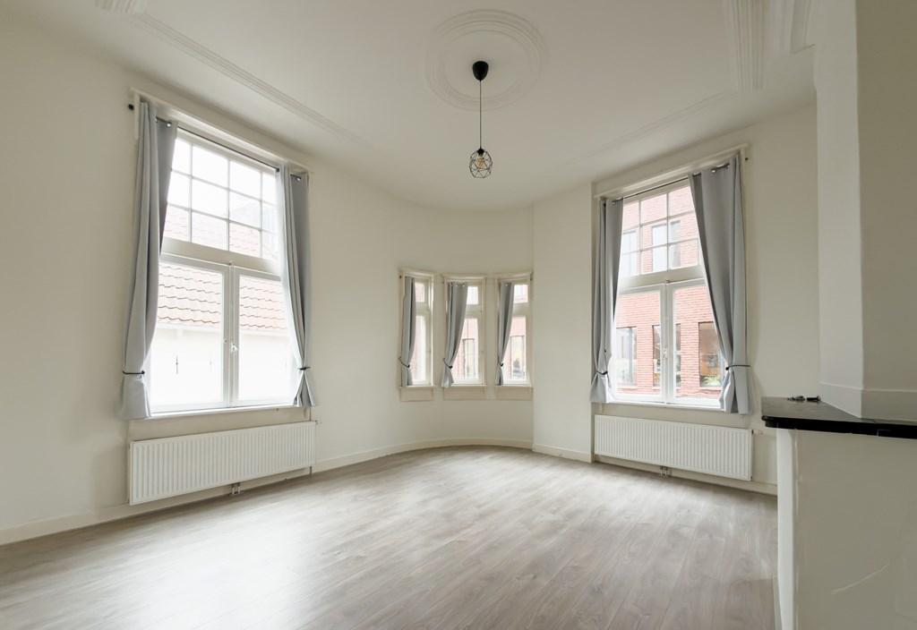 Dit sfeervolle appartement is gelegen op de eerste verdieping en voelt dankzij de hoge plafonds heerlijk ruim aan. De woning is opgedeeld in een woonkamer, eetkamer en slaapkamer aan de achterzijde van de woning, Daarnaast is er een separaat toilet, keuken en badkamer. De keuken is eenvoudig, maar wel voorzien van een kleine vaatwasser en koelkast. De badkamer heeft een wastafel en douche.