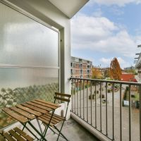 De ruime hal geeft toegang tot alle vertrekken. De woonkamer is aan de voorkant gelegen en dankzij de grote raampartijen is er veel natuurlijk lichtinval. Bovendien biedt de woonkamer toegang tot één van de zonnige balkons. De keuken is te bereiken via de woonkamer, en biedt eveneens toegang tot het tweede balkon. De keuken is voorzien van alle gemakken, zoals een koel-vriescombinatie, 4-pits gasfornuis, oven, afzuigkap en vaatwasser. Verder biedt de hal toegang de badkamer. De badkamer is ruim opgezet en beschikt over een inloopdouche en wastafel met wastafelmeubel en toilet. Tevens zijn hier de aansluitingen voor de wasmachine en droger. Tot slot leidt de hal naar de ruime slaapkamer, voorzien van twee praktische inbouwkasten. Vanuit deze kamer heb je eveneens toegang tot het tweede balkon, waar je heerlijk kunt ontspannen in de buitenlucht. Daarnaast beschikt het appartement over een handige berging op de begane grond, ideaal voor het stallen van fietsen of het opbergen van extra spullen.