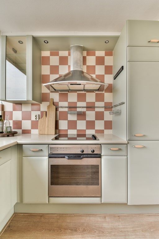 The kitchen is neat, equipped with various built-in appliances and plenty of counter and cupboard space. The bathroom is functionally designed with a bathtub, separate shower, sink, and washing machine connection.