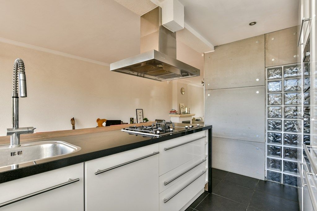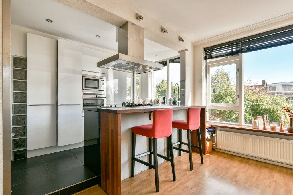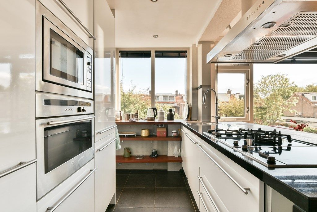 Luxe open keuken aan de achterzijde met toegang tot een tweede balkon met bergkast