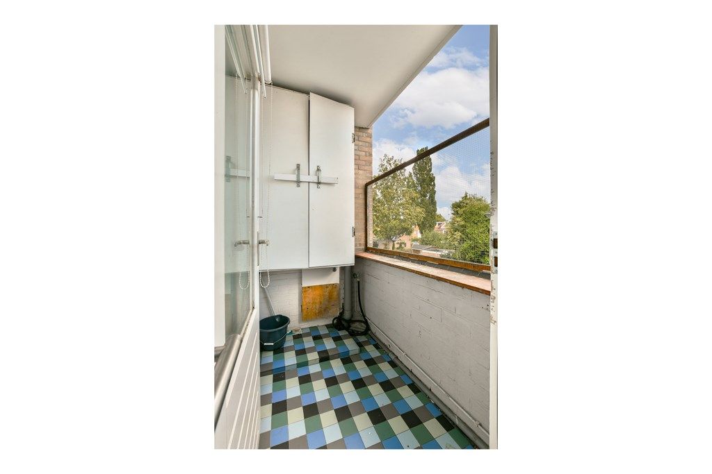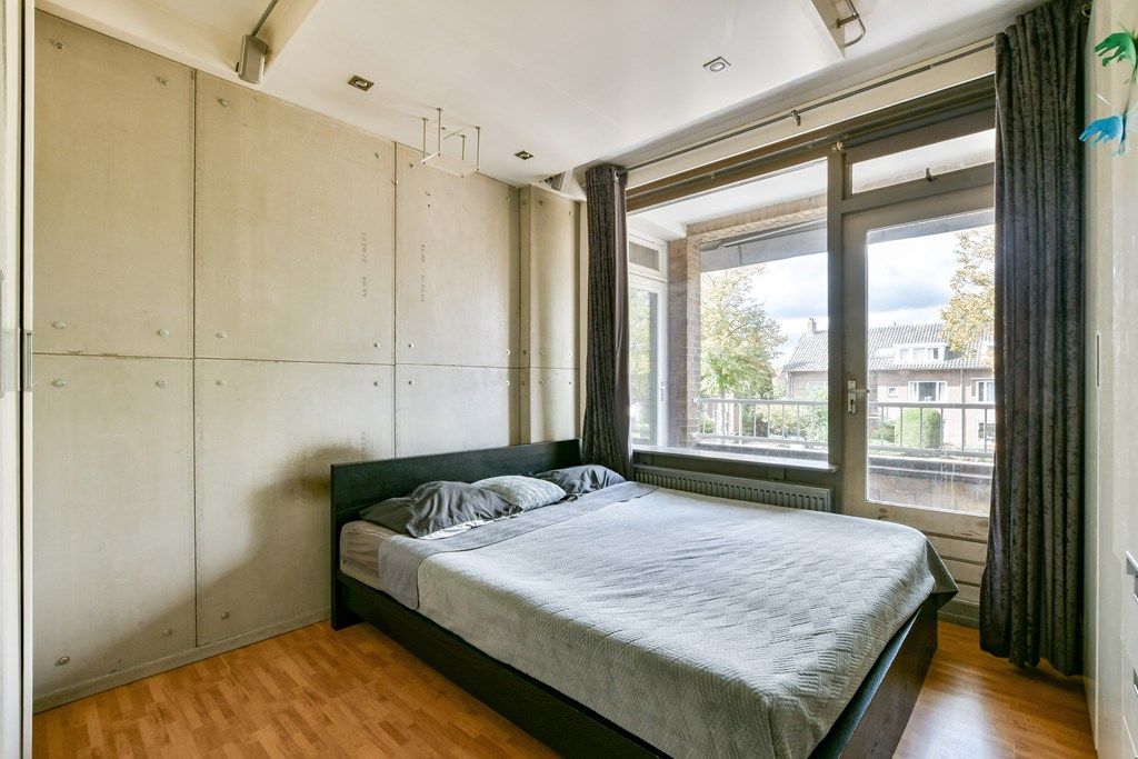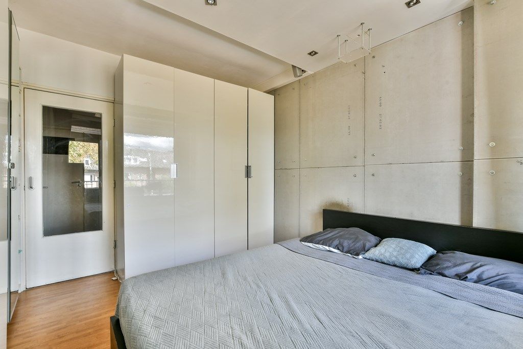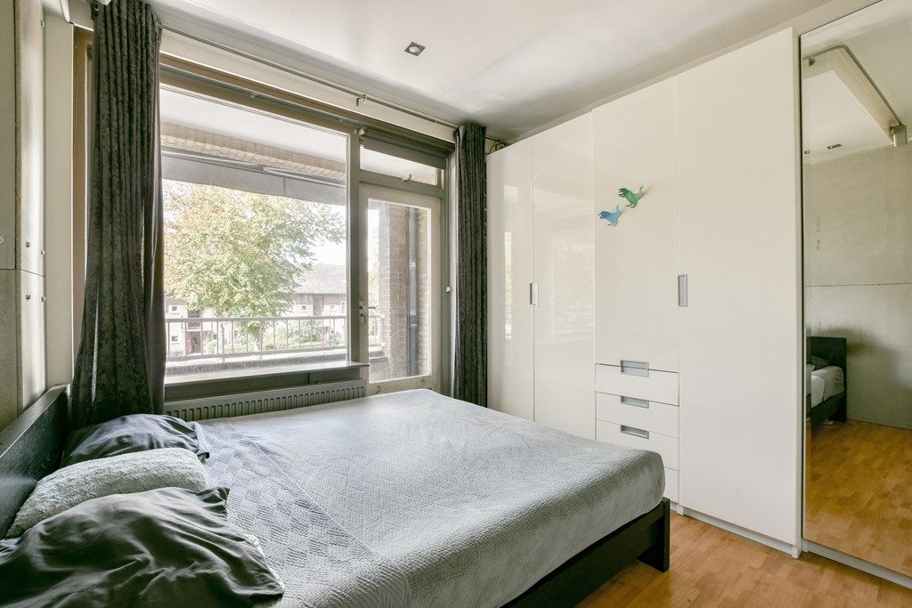 De ruime slaapkamer ligt aan de voorzijde en biedt eveneens toegang tot het balkon. De meterkast bevindt zich buiten de woning, in het trappenhuis. Op de begane grond is een ruime (fietsen)berging aanwezig. De balkondeuren zijn uitgevoerd in duurzaam hardhout.