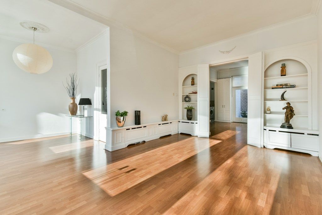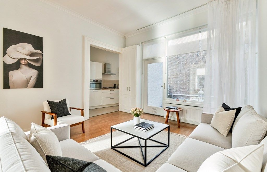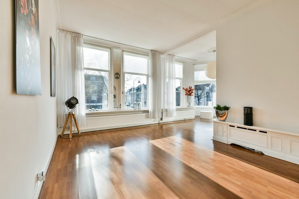 Op de eerste verdieping bevinden zich de royale woonkamer, keuken en separaat toilet. Dankzij grote ramen valt er veel licht binnen en vanaf de woonkamer loop je zo het eerste zonnige terras op. Vanaf de woonkamer heb je een fraai uitzicht over de groene Parklaan en een doorkijk richting de Nieuwe Gracht.