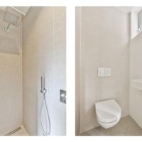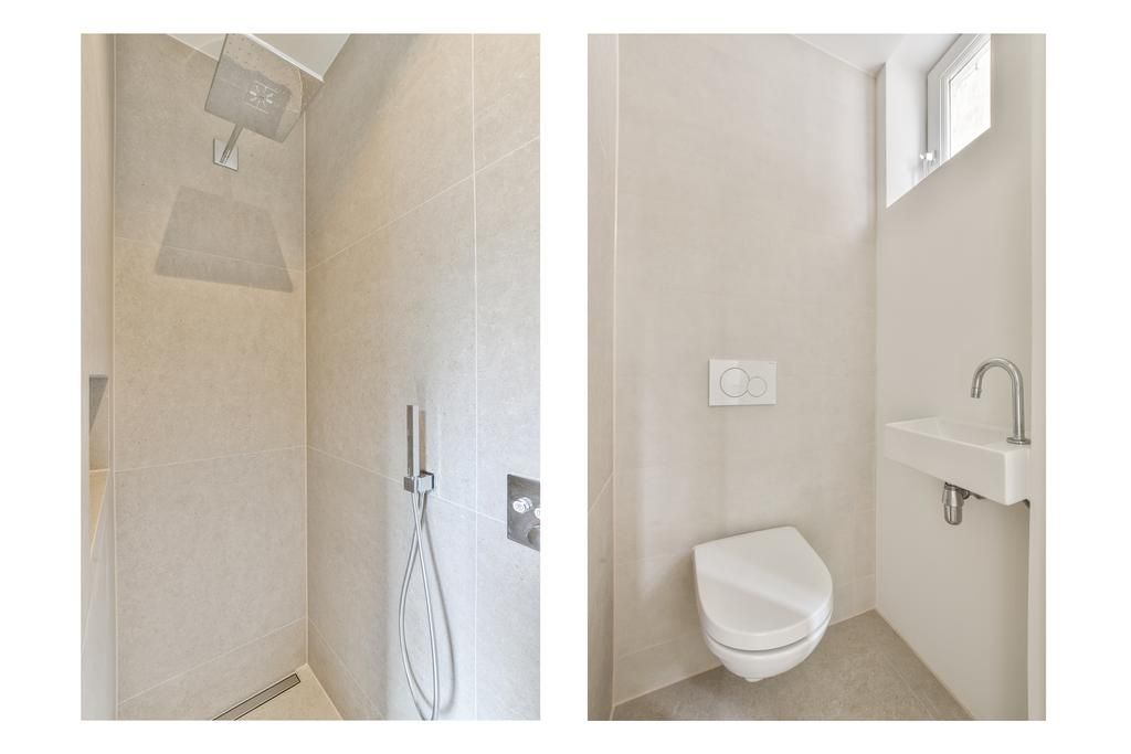 Entree, hal met toegang tot de royaal opgezette living met veel ramen en moderne open keuken. De chique open keuken is voorzien van diverse high-end inbouwapparatuur, zoals een koel-vries combinatie, Miele combi oven, inductie kookplaat met afzuigsysteem, Quooker en een vaatwasser. De keuken biedt veel kastruimte doordat de keukenkasten tot het plafond reiken. Vanuit de hal is er toegang tot het riante dakterras gelegen op het zuidwesten van maar liefst 14 m², als het ware gelegen tussen de gebouwen in. De slaapkamer is eveneens ruim opgezet en biedt voldoende plaats voor een tweepersoonsbed en garderobekast. Vanuit de slaapkamer is er toegang tot de stijlvolle badkamer, als het ware gelegen en-suite, gescheiden door een separate wand voor uw privacy. De badkamer is voorzien van een ruim wastafelmeubel met veel opbergruimte en een walk-in shower met Grohe regendouche. In de hal is er een separaat toilet aanwezig.