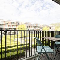 De woning is bereikbaar via trappenhuis of lift. De lichte woonkamer met mooie lay-out en is voorzien van veel natuurlijke lichtinval. De bijbehorende woonkeuken is uitgerust met een grote tafel. De keuken biedt alles wat je nodig hebt, waaronder een koelkast met vriesvak, vaatwasser en kookplaat. Vanuit de hal toegang tot beide slaapkamers, waarvan de hoofdslaapkamer is uitgerust met een tweepersoonsbed en kledingkasten. De tweede slaapkamer beschikt over een eenpersoonsbed wat uit te schuiven is tot een tweepersoonsbed. De badkamer is voorzien van een ligbad, wastafelmeubel en inloopdouche en toilet. Eveneens is er in de hal nog een extra toilet apart gesitueerd. Het appartement beschikt ook over een riant balkon op het Westen, ideaal om de hele dag van de zon te genieten.