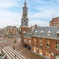 Luxe, volledig gerenoveerde studio op een toplocatie met een spectaculair uitzicht op de Munttoren en binnenstad van Amsterdam.