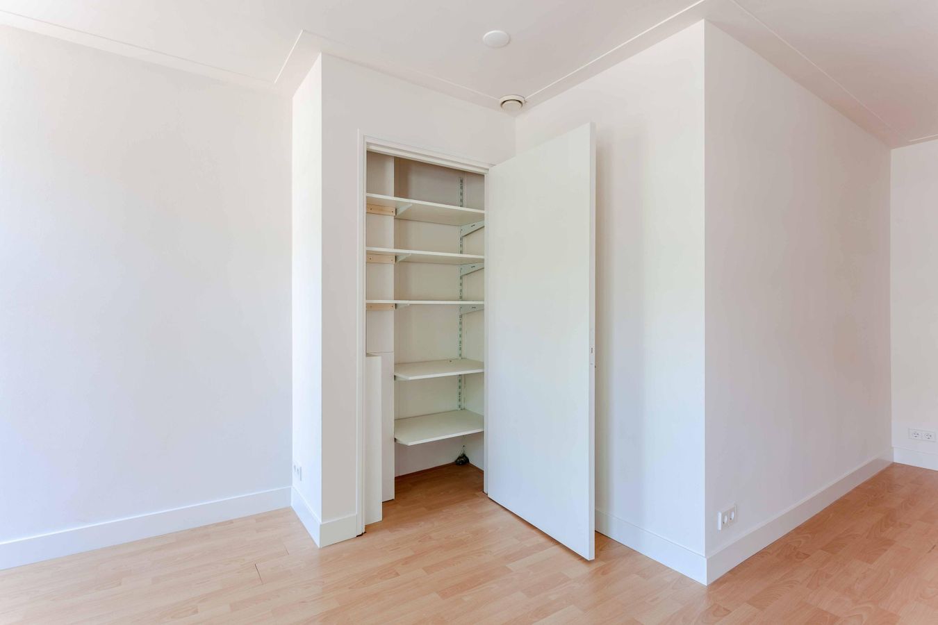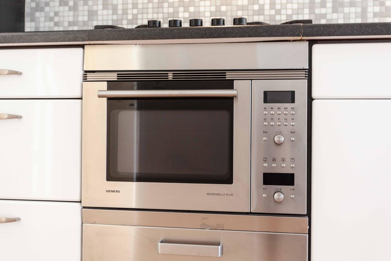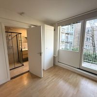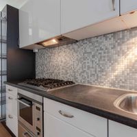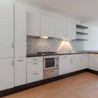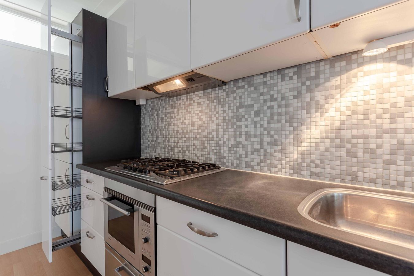 De woning beschikt over een uitnodigende woonkamer met veel natuurlijk licht en uitzicht over de charmante straat. Het appartement is prachtig ingericht met frisse witte muren en een mooie houten vloer. De keuken is uitgerust met diverse moderne inbouwapparatuur, waaronder een combimagnetron, kookplaat, vaatwasser, koelkast en vriezer.