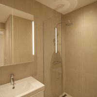 De lichte woonkamer beschikt over een open keuken en biedt toegang tot het ruime balkon aan de achterzijde. De moderne, nieuwe keuken is uitgerust met diverse inbouwapparatuur, waaronder een koel-/vriescombinatie, kookplaat, afzuigkap en vaatwasser. Aan de voorzijde van de woning bevinden zich twee goed bemeten slaapkamers. De stijlvolle en moderne badkamer is voorzien van een ruime inloopdouche en een wastafel. Het appartement heeft vloerverwarming en is is zeer duurzaam met energielabel B. Op de vijfde verdieping bevindt zich een (gedeeld) dakterras, waar je gebruik van kunt maken.