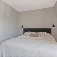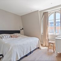 Via de interne trap bereik je de vierde verdieping met twee comfortabele, lichtovergoten slaapkamers. De hoofdslaapkamer is ruim opgezet en beschikt over een praktische inbouwkast. De tweede zeer luxe badkamer is van alle gemakken voorzien: een losstaand ligbad, inloopdouche, toilet, wastafelmeubel en een dakraam, wat zorgt voor natuurlijk licht en vanuit het ligbad naar de sterren kijken! Bovendien is er een diepe gangkast voor extra opbergruimte. Daarnaast kan je via het gemeenschappelijke trappenhuis bij de extra kamer, die ideaal te gebruiken is als werk-/studeerkamer en waar ook aansluiting is voor een wasmachine. Op beide verdiepingen ligt een warme, nette houten vloer die bijdraagt aan de sfeer en eenheid in het interieur.
