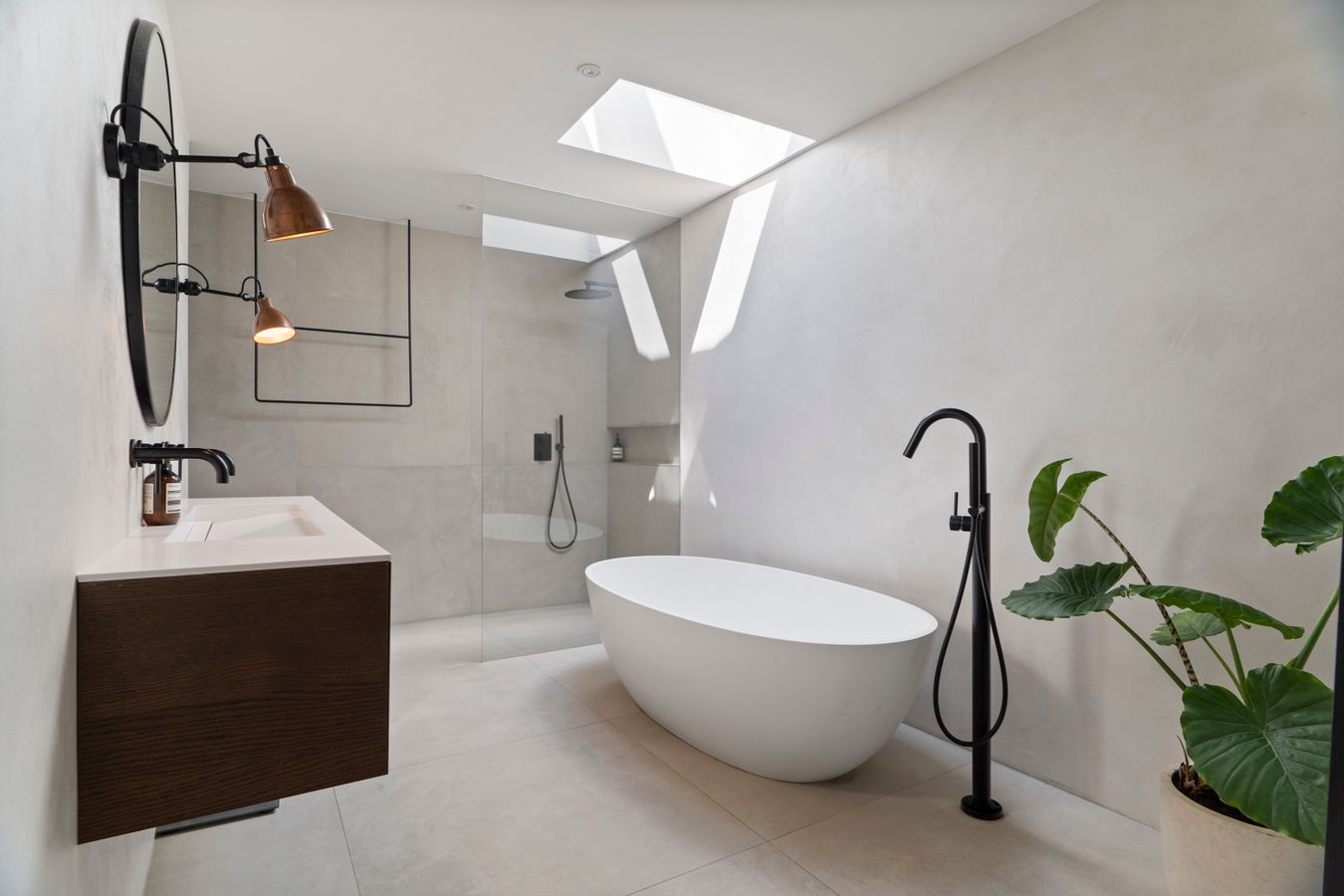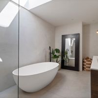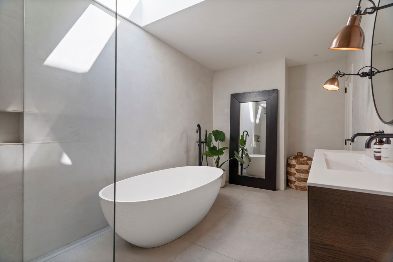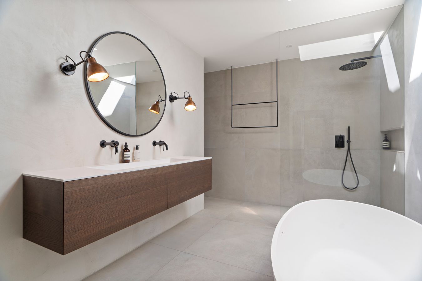 - Badkamer voorzieningenToilet, Inloopdouche, Ligbad, Dubbele wastafel, Wastafelmeubel
