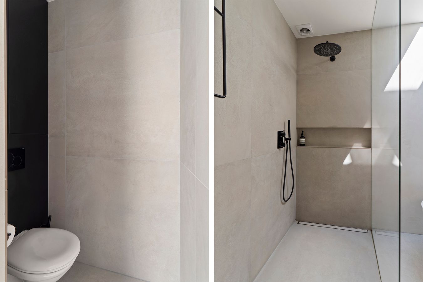 De leefruimte is een harmonieus geheel, voor zowel sociale gezelligheid als voor rustige momenten. Op deze verdieping bevindt zich tevens een extra badkamer met douche, wastafel, toilet en handdoekradiator, ideaal voor gasten of als extra gemak.