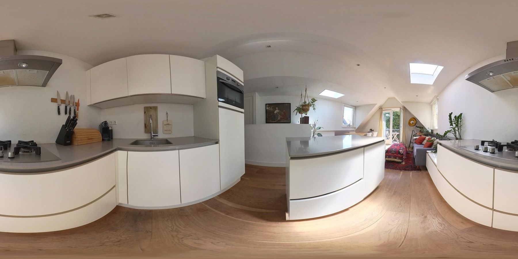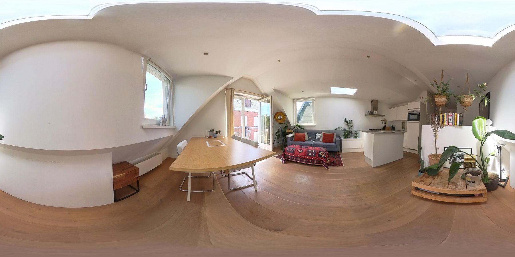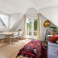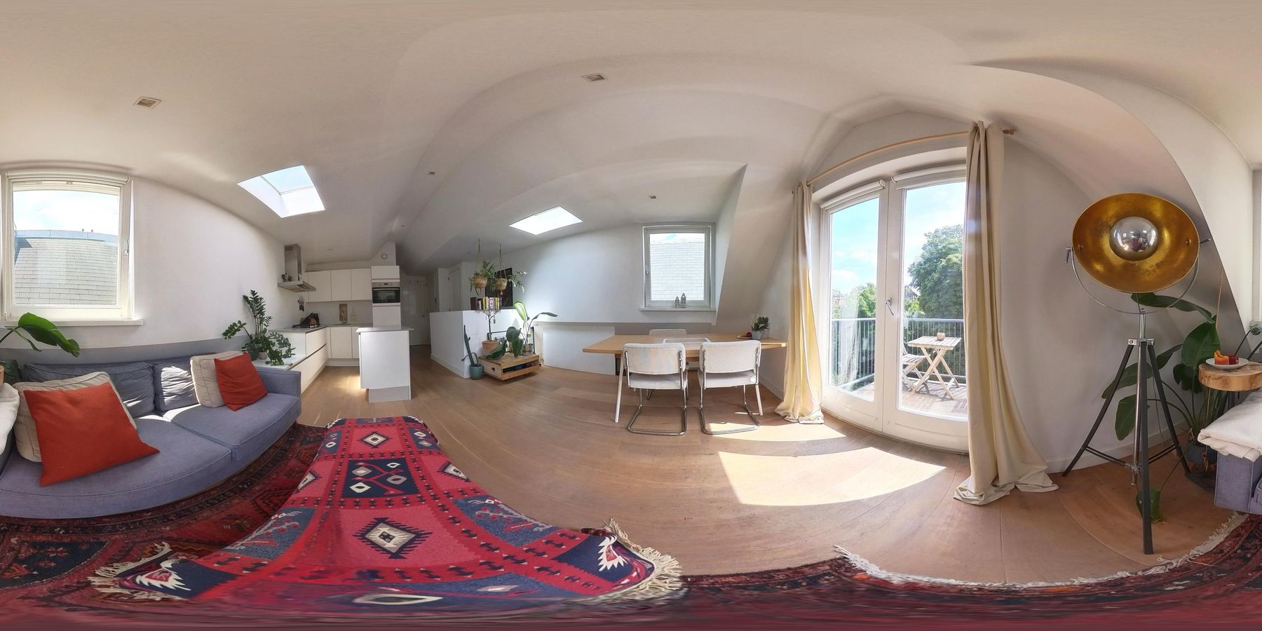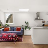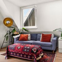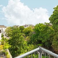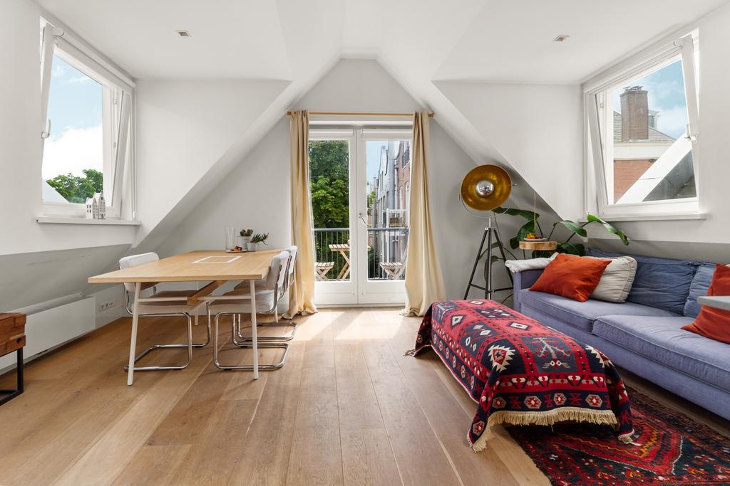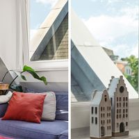 De woonkamer met aangrenzende open keuken is door de vele velux ramen zon overgoten. Daarnaast loop je vanuit de woonkamer zo het balkon op. Het balkon is gelegen aan de achterzijde van de woning met prachtig uitzicht over de binnentuinen van de Govert Flinckstraat. De ligging van het balkon zorgt ervoor dat u de hele dag in privacy van de zon kan genieten.