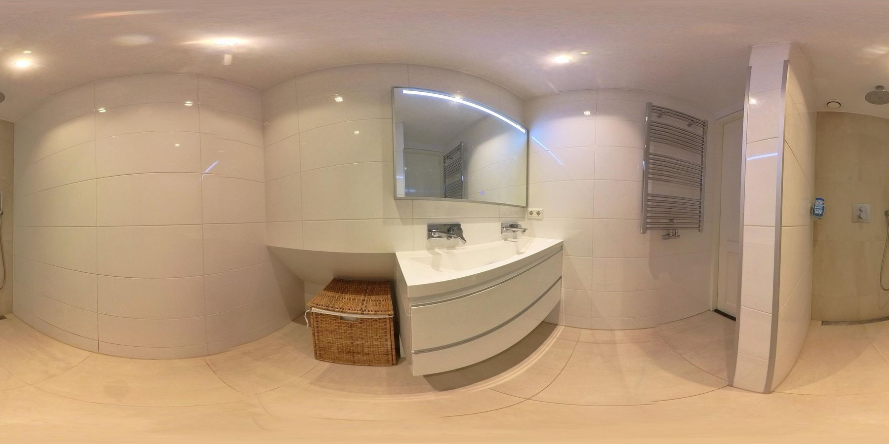 - Badkamer met regendouche en dubbele wastafel