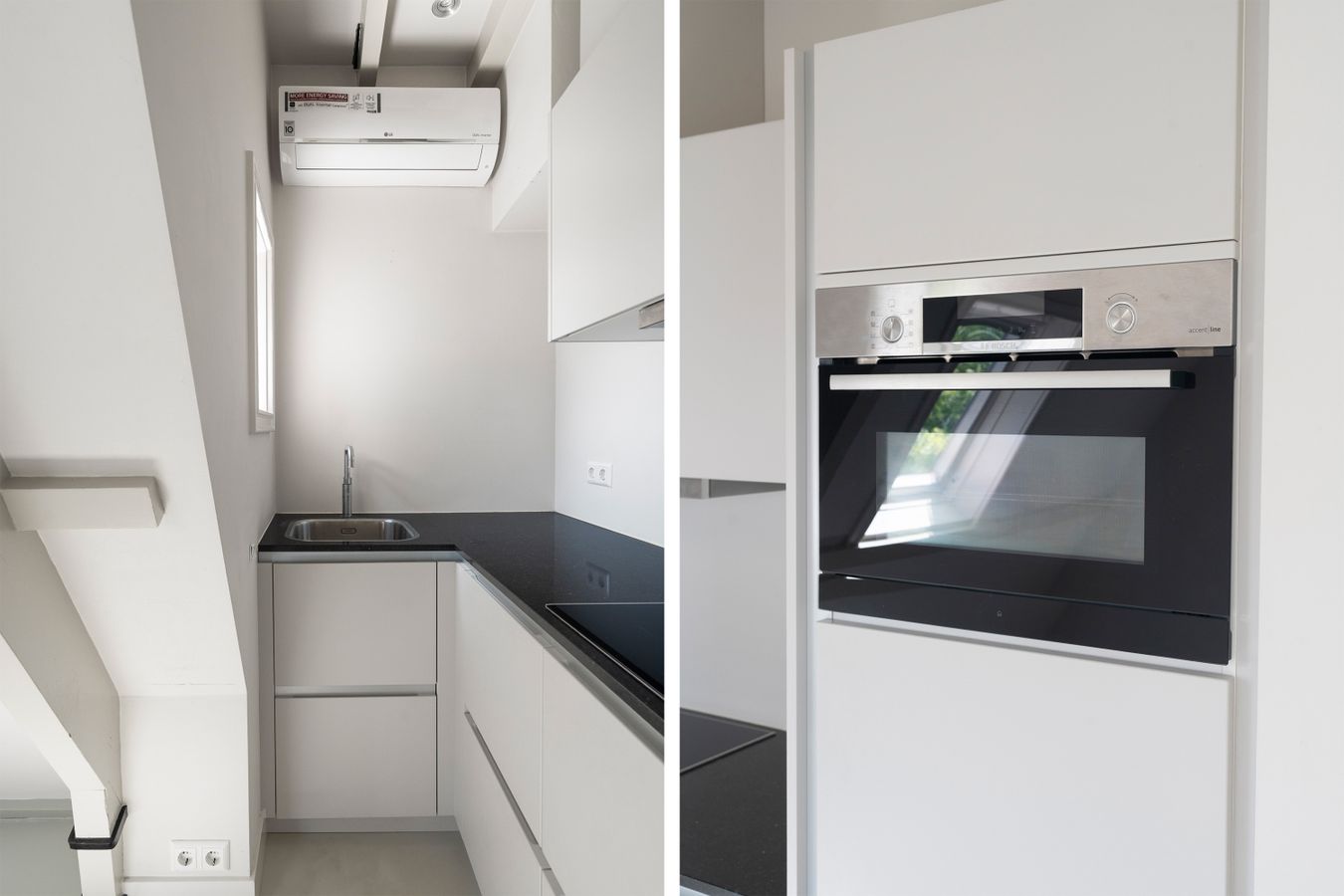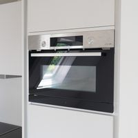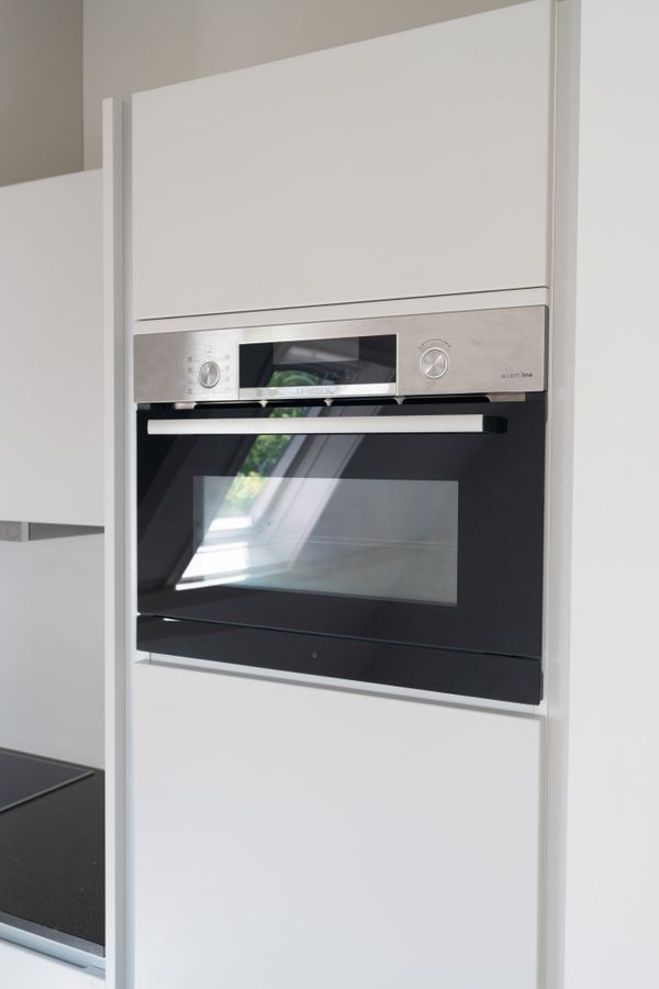 De leefruimte beschikt over een moderne open keuken met alle benodigde apparatuur van het merk Bosch voor een prettige kookervaring. Je vindt er een Quooker, inductiekookplaat, vaatwasser, combi-oven, koelkast en airconditioning.
