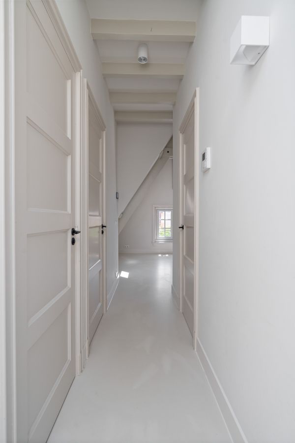 Bij binnenkomst valt direct het warme karakter van de woning op, met zichtbare houten balken en schuine daken, gecombineerd met een frisse, moderne afwerking. Door de renovatie van 2018 straalt het interieur authenticiteit en eigentijds comfort uit, met lichte neutrale kleuren en overvloedig daglicht die zorgen voor een harmonieus geheel.
