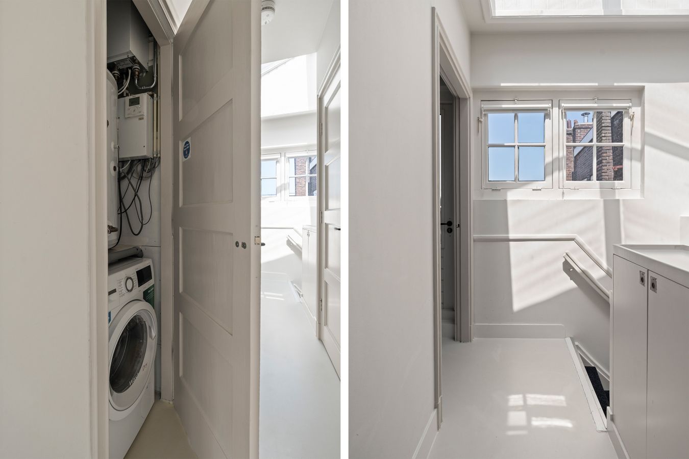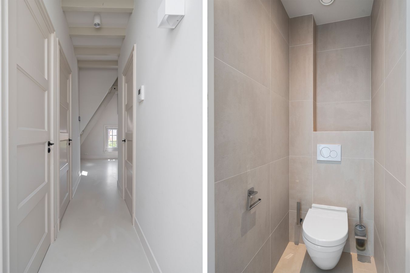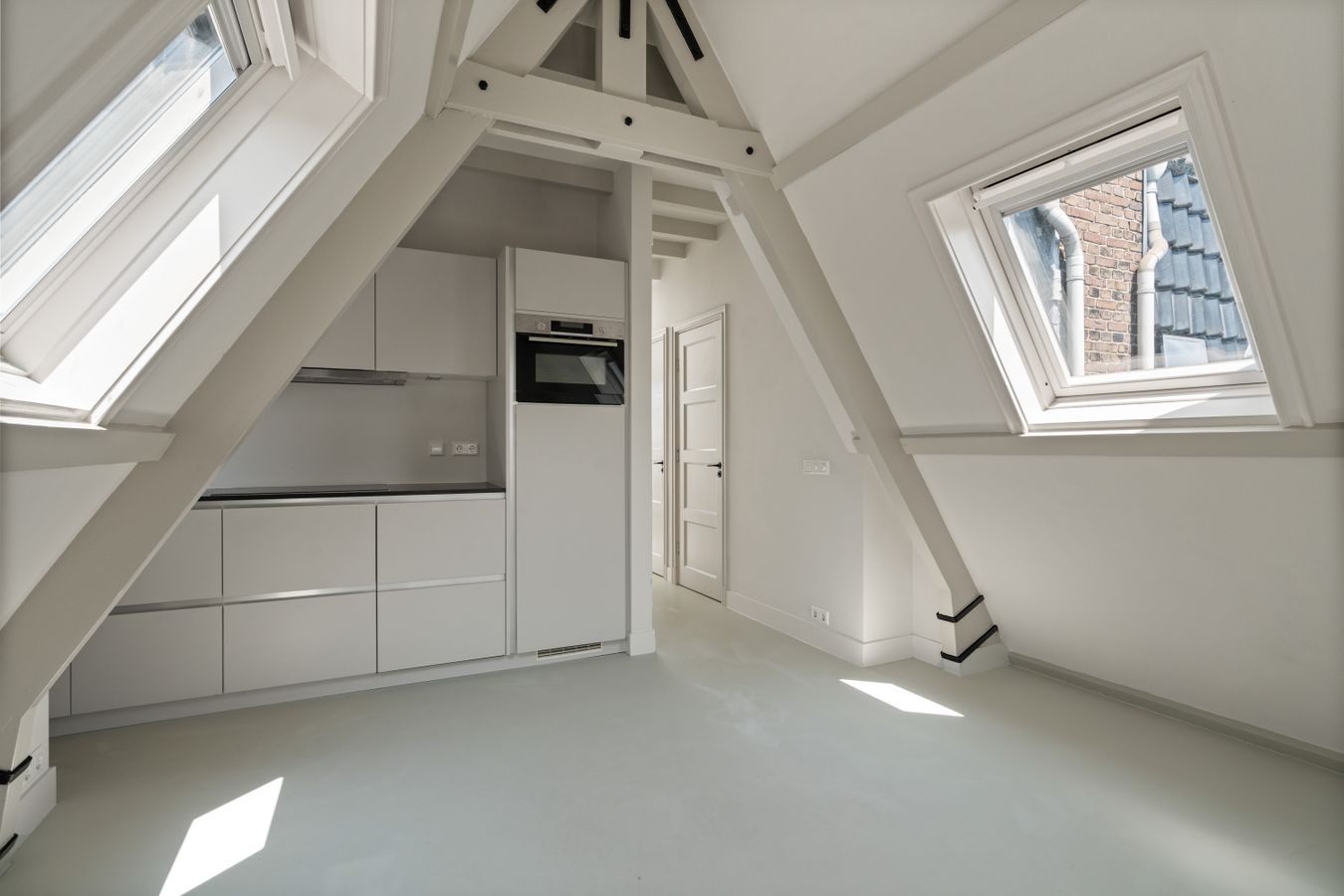 Aan de achterzijde van de woning ligt de slaapkamer, die net zoals de rest van de woning veel natuurlijk licht binnenlaat. Vanuit de slaapkamer is er toegang tot een rustig, privé dakterras van 11m², gelegen op het noorden.