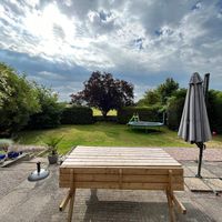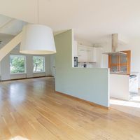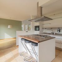 Prachtige moderne gestoffeerde vrijstaande woning met zowel voor als achter een prachtig uitzicht over de landelijke omgeving. De entree van de woning is met hal en ruim toilet. Vanuit de hal is de woonkamer met open haard te bereiken. De royale keuken bevindt zich aan de achterzijde. Deze is voorzien van een koelkast, vaatwasser, combimagnetron, en gaskookplaat op een kookeiland.