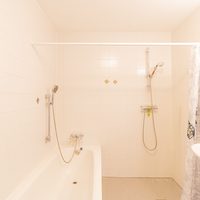 Op de eerste verdieping bevinden zich in totaal 3 slaapkamers, ieder met grote ramen die zorgen voor veel natuurlijke lichtinval. De kleinere slaapkamer is ook perfect te gebruiken als home office of studeerkamer. De badkamer is netjes afgewerkt en beschikt over een ligbad, een inloopdouche, een toilet en een wastafel.