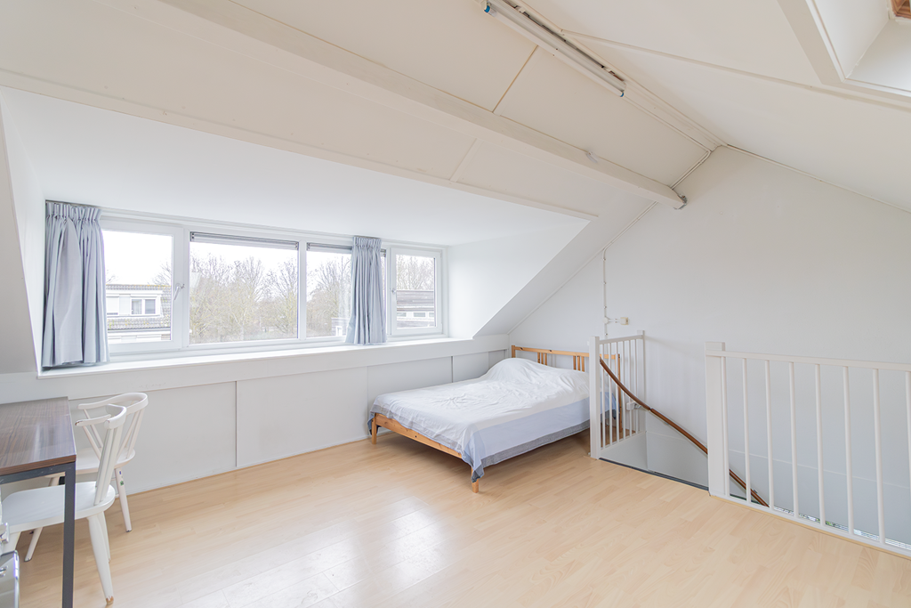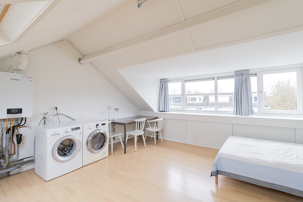 De tweede verdieping is ruim, licht en zeer flexibel in te richten. Deze ruimte kan uitstekend dienen als logeerkamer, speelkamer of hobbyruimte met nog eens voldoende bergruimte. De zolder is daarnaast uitgerust met een wasmachine en droger, wat zorgt voor extra gemak en functionaliteit.