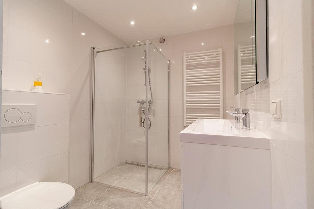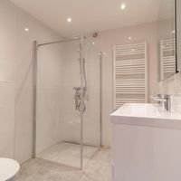Op de eerste etage zijn drie ruime slaapkamers en de moderne badkamer te vinden. De grote slaapkamer is gelegen aan de voorzijde van de woning en beschikt over een en-suite. De luxe badkamer beschikt over een toilet, wastafelmeubel met een verlichte spiegel en een inloopdouche.