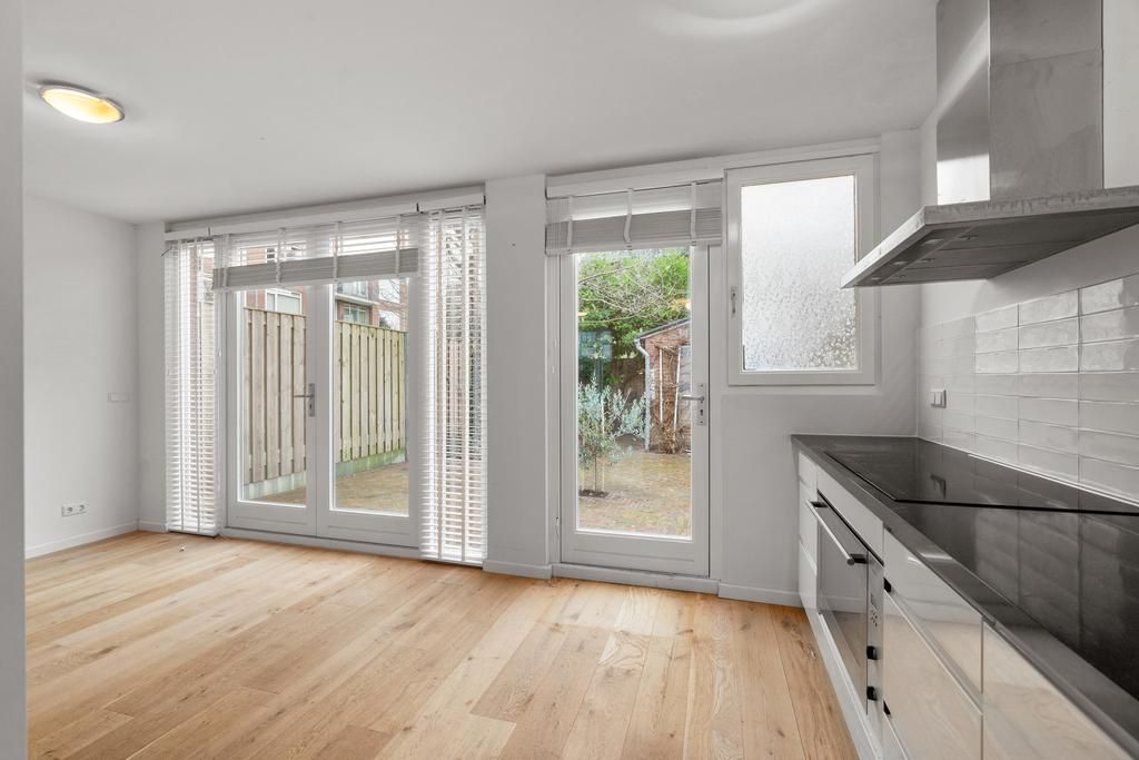In een rustige straat wordt via de voortuin de prettige eengezinswoning bereikt. De woning is kort geleden volledig gerenoveerd en voorzien van energielabel A! Vanuit de centrale entreehal is er toegang tot het separate toilet en de woonkamer. De bijzonder ruime uitgebouwde woonkamer geeft doormiddel van de vele ramen veel lichtinval en toegang tot de prettig gelegen achtertuin met schuur. De woonkamer is voorzien van prachtige houtenvloer met vloerverwarming. De half open keuken is met veel opbergruimte en apparatuur waaronder een magnetron, oven, vaatwasser en inductiekookplaat met afzuigkap. De eerste etage is voorzien van 2 zeer ruime slaapkamers, 1 kleine kamer en gerenoveerde badkamer met douche wastafel met onderkastjes en een spiegelkast. Via de kleinere slaapkamer wordt het ruime dakterras bereikt. De tweede etage heeft een zeer ruime zolderkamer en een 2e badkamer met douche en toilet.