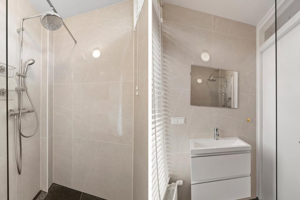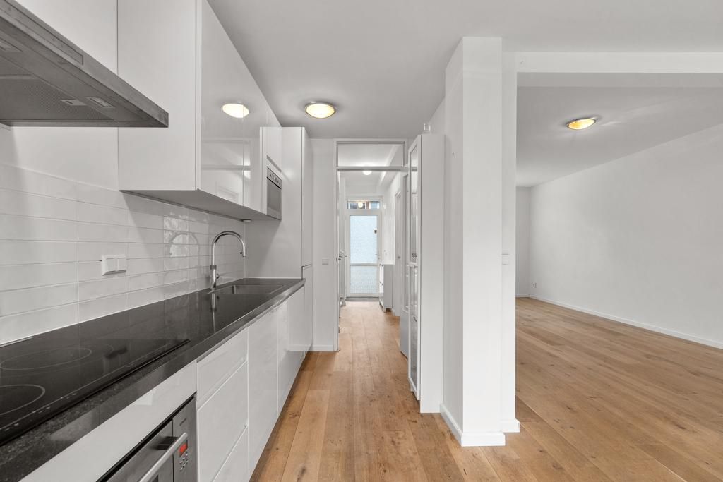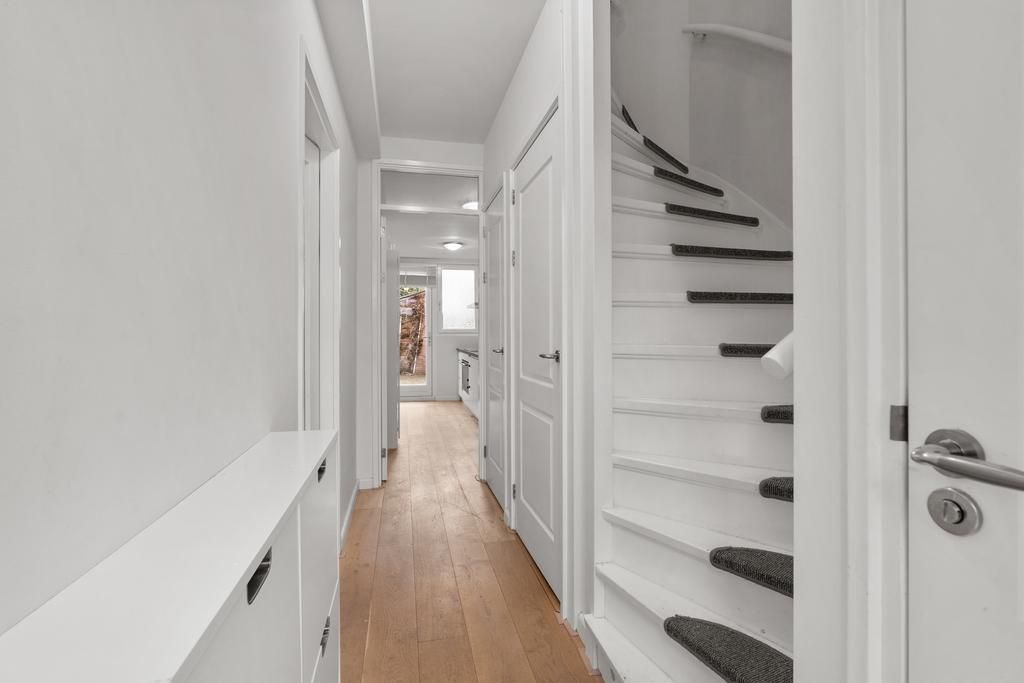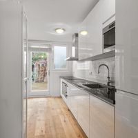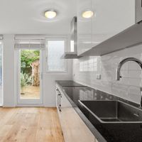 In een rustige straat wordt via de voortuin de prettige eengezinswoning bereikt. De woning is kort geleden volledig gerenoveerd en voorzien van energielabel A! Vanuit de centrale entreehal is er toegang tot het separate toilet en de woonkamer. De bijzonder ruime uitgebouwde woonkamer geeft doormiddel van de vele ramen veel lichtinval en toegang tot de prettig gelegen achtertuin met schuur. De woonkamer is voorzien van prachtige houtenvloer met vloerverwarming. De half open keuken is met veel opbergruimte en apparatuur waaronder een magnetron, oven, vaatwasser en inductiekookplaat met afzuigkap. De eerste etage is voorzien van 2 zeer ruime slaapkamers, 1 kleine kamer en gerenoveerde badkamer met douche wastafel met onderkastjes en een spiegelkast. Via de kleinere slaapkamer wordt het ruime dakterras bereikt. De tweede etage heeft een zeer ruime zolderkamer en een 2e badkamer met douche en toilet.