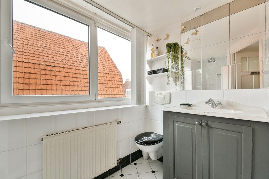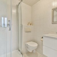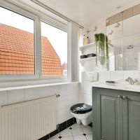 Op de eerste verdieping beschikt de woning over twee comfortabele slaapkamers en een nette badkamer, uitgerust met een inloopdouche, toilet en wastafel met meubel. De indeling is overzichtelijk en functioneel, waardoor de verdieping prettig en efficiënt in gebruik is. Daarnaast beschikt de woning over een zonneterras op de eerste verdieping: een heerlijke plek om in alle rust buiten te zitten, te genieten van de zon en extra buitenruimte te ervaren, direct grenzend aan de woonverdieping.