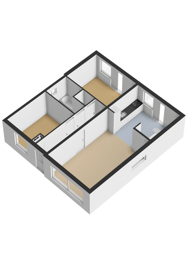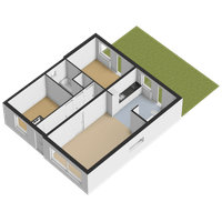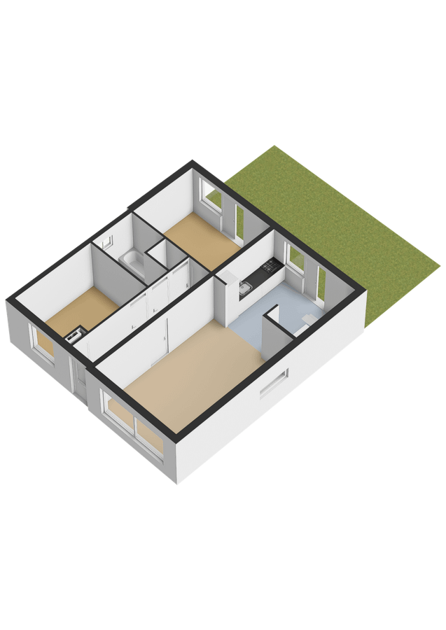 Op de begane grond bevinden zich tevens twee ruime slaapkamers en de badkamer. De slaapkamer aan de achterzijde heeft directe toegang tot de tuin, wat zorgt voor extra comfort en privacy. De tweede kamer aan de voorzijde is multifunctioneel en uitstekend geschikt als extra zitkamer, slaapkamer of speelruimte. De ruime badkamer is bereikbaar via de hal en beschikt over een ligbad, douche en wastafel.