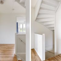 Eerste verdieping: Hier bevinden zich drie goed bemeten slaapkamers. De hoofdslaapkamer ligt aan de achterzijde en biedt veel ruimte. De overige kamers zijn licht en flexibel in te richten. De eerste badkamer is voorzien van een ligbad, douche, dubbele wastafel en toilet.