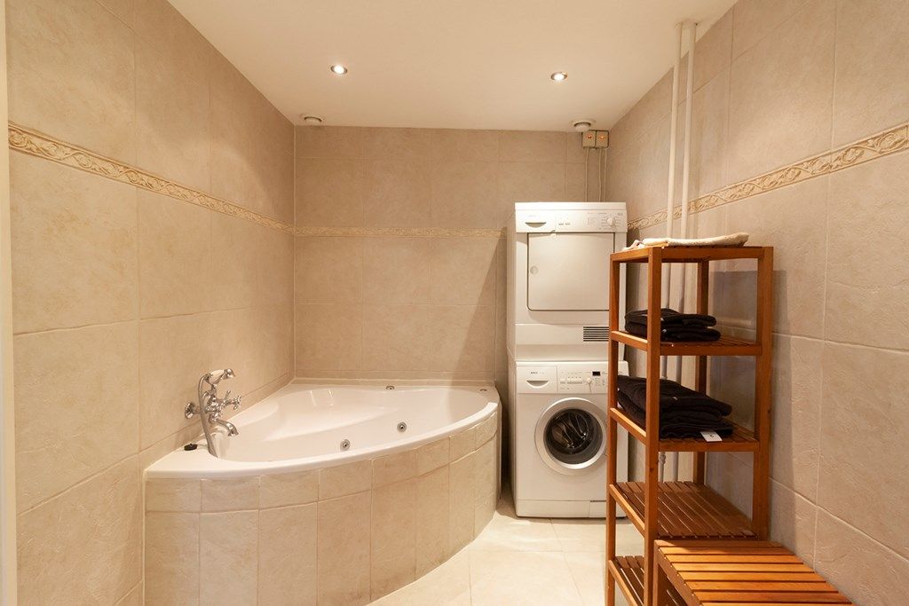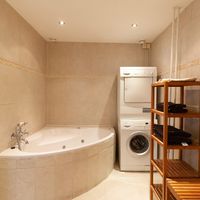 The apartment has two very spacious bedrooms on the first floor. The master bedroom has a double bed and ample closet space. The second bedroom can be furnished in consultation. The spacious and neat bathroom has a bath, walk-in shower, sink, washing machine and dryer. The toilet is located in the hallway. The apartment complex is well maintained and has two closed entrances and two elevators.