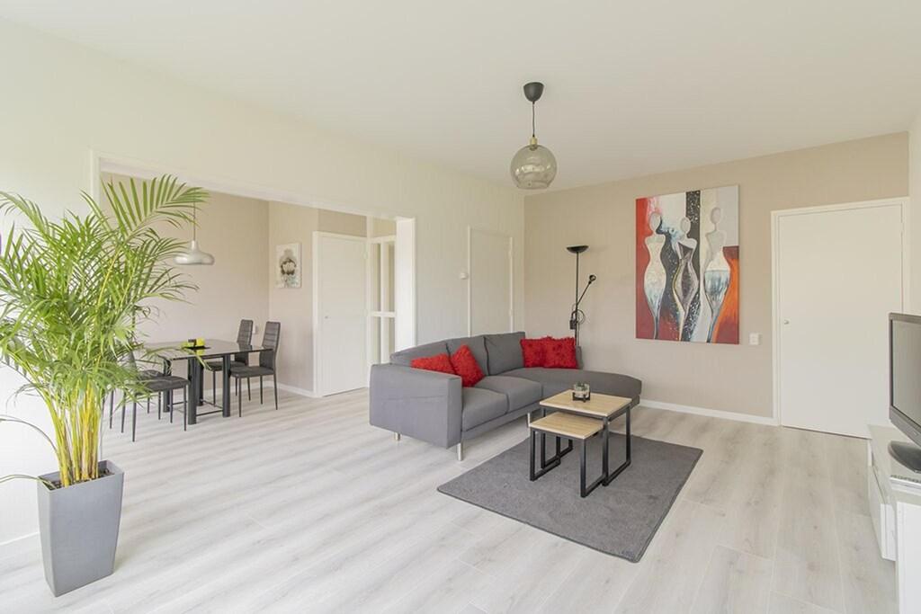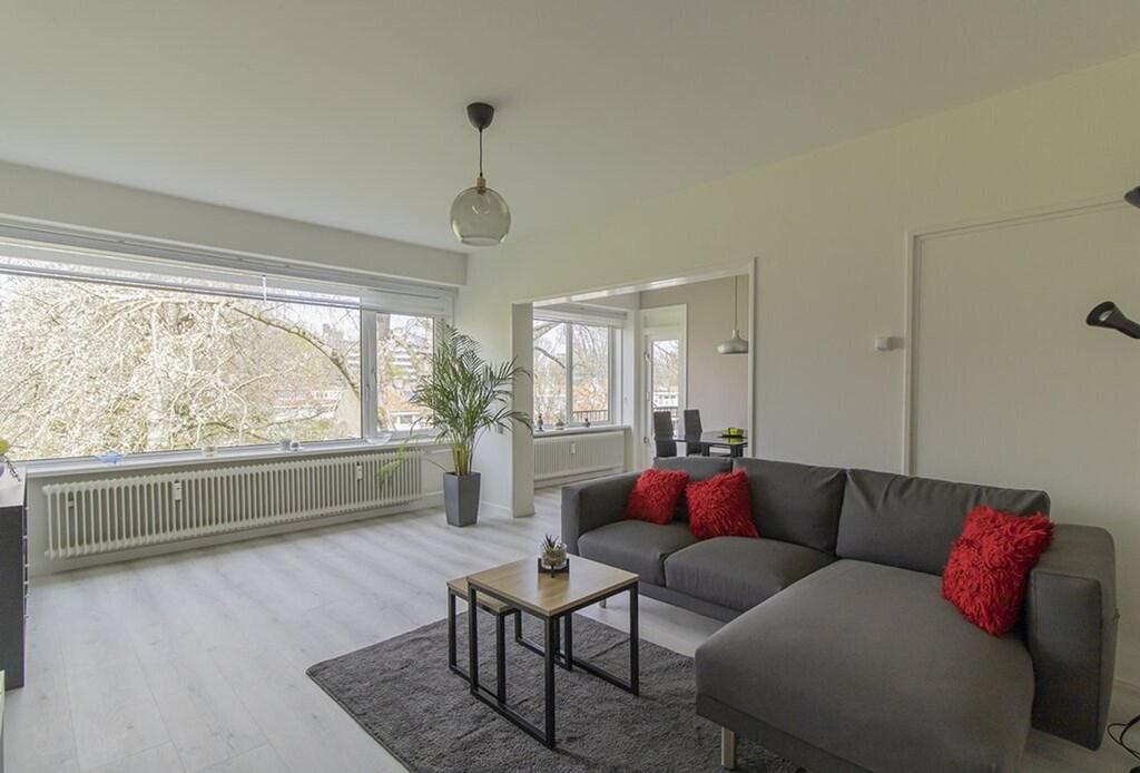 This spacious and furnished 2-bedroom apartment is part of a well-maintained apartment complex and is located in the Keizer Karelpark district. The apartment is located on the third floor and accessible by stairs or elevator. The hall gives access to all rooms. The living room with dining room is located at the rear and provides access to the spacious balcony. The balcony is located on the favorable west and has a view over the green. The master bedroom has a double bed and a built-in wardrobe. The balcony and bathroom are also accessible from the master bedroom. The second bedroom is located at the front and has a single bed and built-in wardrobes. The bathroom has a bath, washbasin with washbasin and washing machine. The kitchen is located at the front and is fully equipped, such as a dishwasher, refrigerator, freezer, 4-burner gas hob, extractor and combi oven. There is also a private storage room available. All necessary facilities such as shops, schools, public transport, etc. are available nearby. Within walking distance are the shopping streets Lindenlaan and Van der Hooplaan where many products and services are available. The indoor shopping center Stadshart is 5 minutes. Near the nature reserve 'De Poel', directly adjacent to the Amsterdamse Bos, an area with numerous recreational opportunities. For various sports, there are various sports facilities in the area. There are several bus stops in the area and via the nearby highways A9, A2, A4, A5 and ring road A10, Schiphol Airport, but also Amsterdam, Utrecht, Haarlem, Hoofddorp, The Hague and Rotterdam can be reached easily and quickly.