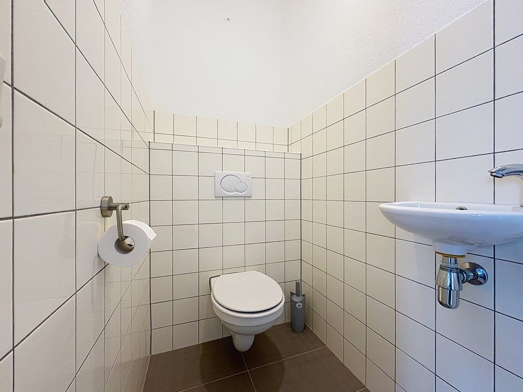Via the stairs or the elevator, you enter a neat and well-maintained hallway that provides access to the modern living room, two bedrooms, a bathroom, and a separate toilet.