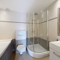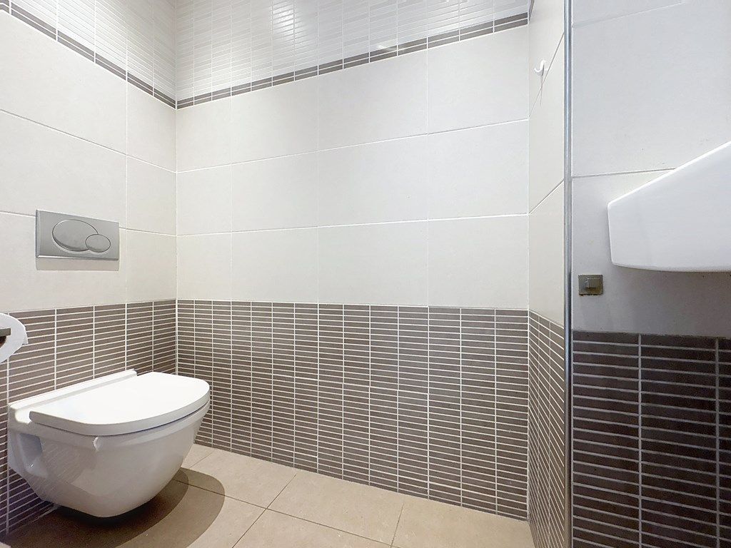 On the first floor, you’ll find several rooms. The brand new kitchen is equipped with built-in appliances such as a dishwasher, refrigerator, oven, and gas cooktop. The kitchen also provides direct access to the sunny roof terrace, an ideal spot to enjoy relaxing outdoor moments.
