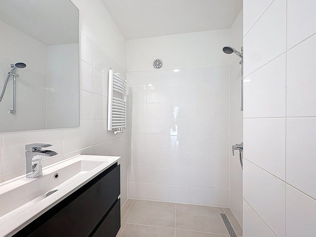 The two spacious and bright bedrooms are accessible from the hallway, one at the front and one at the rear. The recently renovated bathroom features a lovely walk-in shower and a large washbasin. The toilet is separate.