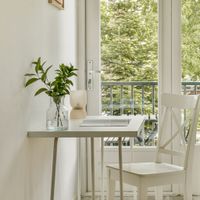 The spacious L-shaped hallway provides access to all rooms. To the right is a generously sized bedroom, which is easy to furnish due to its practical layout. The living room is located at the rear of the apartment and benefits from large windows that allow in plenty of natural daylight. Facing east, the living room enjoys morning sunshine and also gives access to a cozy and intimate balcony.