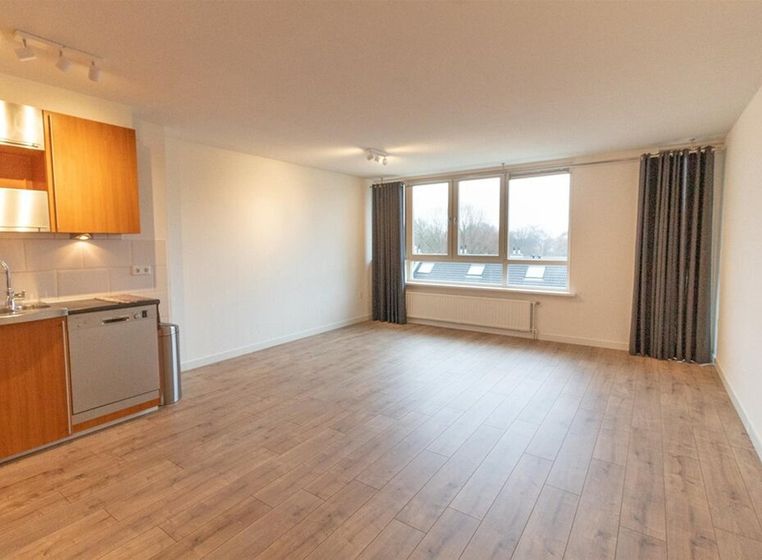 Ruim, licht en goed onderhouden appartement gelegen op de 5e verdieping met privé parkeerplaats en berging op 2 minuten afstand van de snelweg, 5 minuten fietsen naar het centrum en met openbaar vervoer voor de deur!